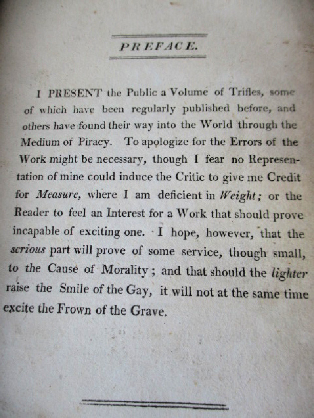 rw256. Pub'd. London, 1807. 16mo, 6 5/8" tall, 260 pages, complete, lacks end pages. Text is tight and clean. Covers are reinforced with repair using paper hinges within, strong thus. Cover edges are worn. Page 243 with poem on "Ballooning, Wonders of 1804". Good condition. PLEASE NOTE: This book has rudimentary repairs......not professional, but with enough skill to make it serviceable. Do not hesitate to e-mail with any questions. As Always, Satisfaction Guaranteed! I expect to receive payment within 10 days, unless we have made other arrangements. Shipping will be USPS Media mail or Priority, if requested. I'm glad to combine multiple purchases in order to minimize shipping costs. I WILL SHIP INTERNATIONALLY, and I try to be as economical as possible with the shipping costs. RETURN POLICY: Satisfaction Guaranteed! Track Page Views With Auctiva's FREE Counter