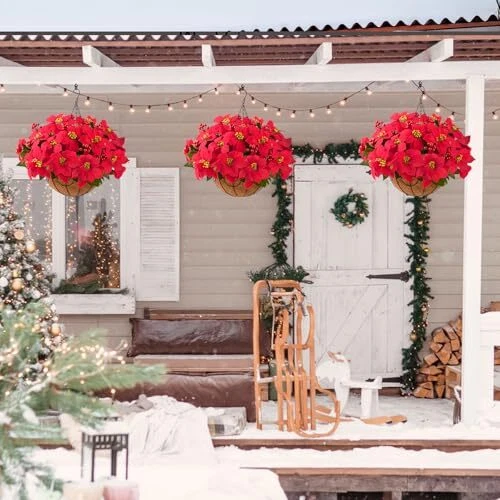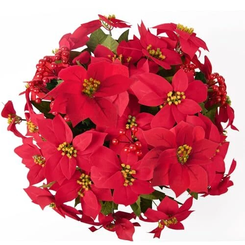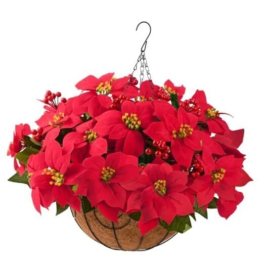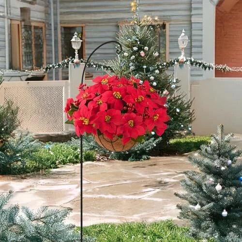 30 Days Return Policy Fast Delivery Trusted seller Poinsettia Artificial Fake Christmas Hanging Flowers Plants Basket for Outdoors Decoration Outside Red Faux Silk Poinsettia Berry UV Resistant Xmas Decoration for Porch Garden Yard Holiday New Year Product Description DIY Beautiful Christmas Flowers: The artificial hanging baskets only take 5 minutes to assemble,designed to look and feel lifelike.Just insert the flower branches into the flower basket and adjust the shape you like. Each bouquet which can be adjusted flexibly. Package and Size : This hanging flowers include 1 chain basket, 1 green hat, 5 branches of vivid fake poinsettia flowers and 3 branches of red berries.The size of the Christmas Decoration is 21 " x 21" x 19 "(LxWxH). Good Materials: Beautiful artificial flowers comprise of good-quality silk Poinsettia flowers and plastic stems.The basket is compose of metal with chains. Fresh color, generous and elegant,well made and vibrantly colored, looks real-like. UV Resistant: The fake hanging baskets flowers are UV resistant and hard to fade, It can keep alive and vigorous without watering or sunlight. You don't have to take care of these faux flowers, they will keep bright year for year. You can have more time to enjoy your beauty life. Multipurpose Xmas Decoration: The artificial hanging flowers look lifelike and stylish.You can making it the nice hanging basket for your patio, balcony,garden, porch,office,yard,indoor and outdoor anyw you want to be decorated to make your home looks full of warm colors. Shipping Returns Payment Shipping Shipping is FREE to all addresses other than APO/PO boxes in the lower 48 states. All our stock ships from US-based warehouses. Shipped via USPS or UPS (depending on location and package weight) Unless stated otherwise, all orders will ship within 24-72 hours of your payment being processed. Check our feedback to see the great reviews of FAST shipping we offer. Returns As our valued customer, we will do our best to make sure the product you receive arrives to you on time and as expected. If you are not satisfied with your purchase, please contact us within 30 days of receiving your order to process a return. Payment We currently accept payment via eBay managed payments only. Once payment is cleared, we will dispatch your shipment within 1-3 business days. Please refer to the "Shipping" tab for more information regarding shipping speed to your destination.
