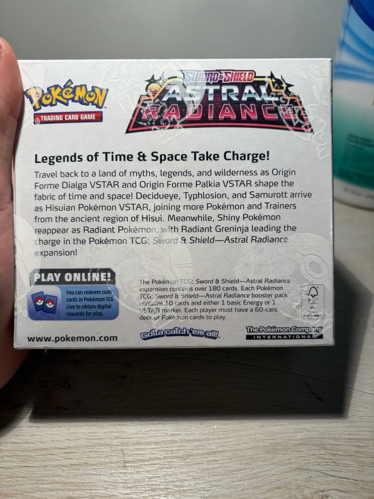 Number of Cards:Over 180Language:EnglishSet:Astral RadianceCharacter:Origin Forme Dialga, Origin Forme Palkia, Decidueye, Typhlosion, SamurottNumber of Boxes:1Configuration:BoxManufacturer:The Pokémon Company InternationalFeatures:BoosterGame:Pokémon Trading Card GameCard Size:StandardMPN:181-86023Year Manufactured:2022Age Level:6+Material:Card Stock