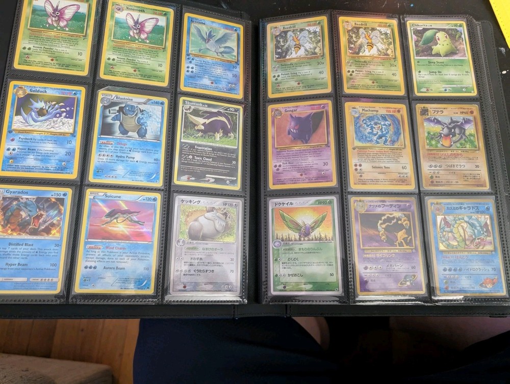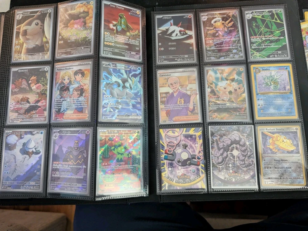 Cards ranging from base set- current (1999-2026) this is a trade binder for me. Vintage cards range from NM-HP all current sets 2016-2026 all cards are near mint. Cards range from 1st Ed, Holo, non Holo rare, promos - one or 2 sealed, vmax's, Ex's, celebrations, energies, baby shinies, cosmos Holo, full arts, illustration, rainbow, gold,gx, 151, trainers, art rares, and Topps. You are taking the entire lot! All 291 cards! English/Japanese/a couple Korean. I will send the entire binder. This is years worth of collecting, great for any collector or anyone just starting out. Every type of pokemon, every type of card! Enjoy!