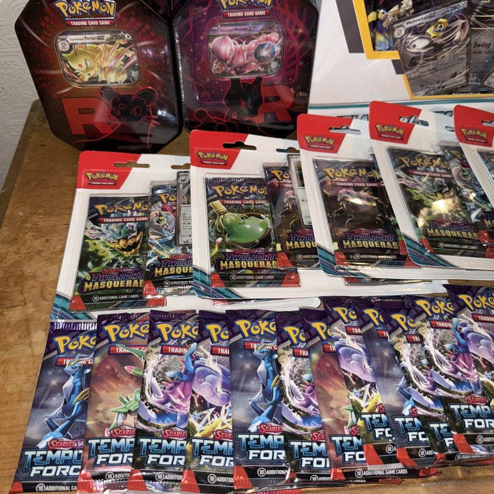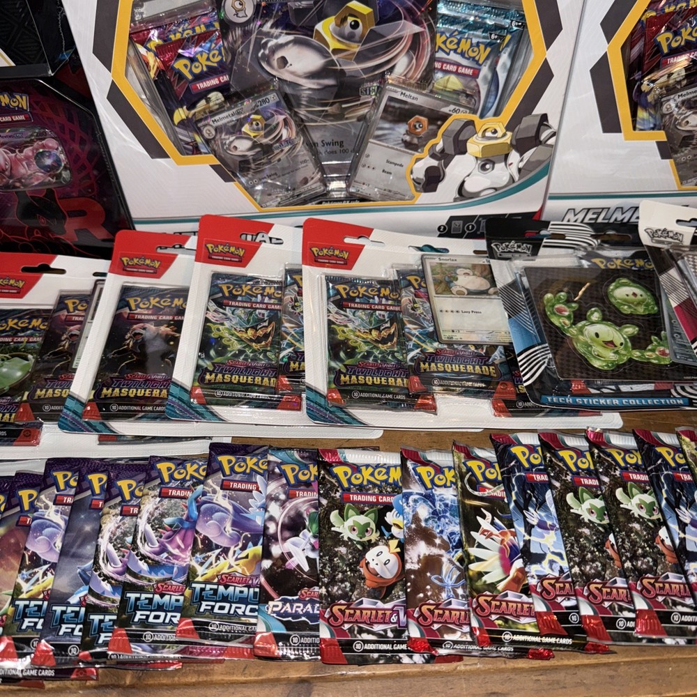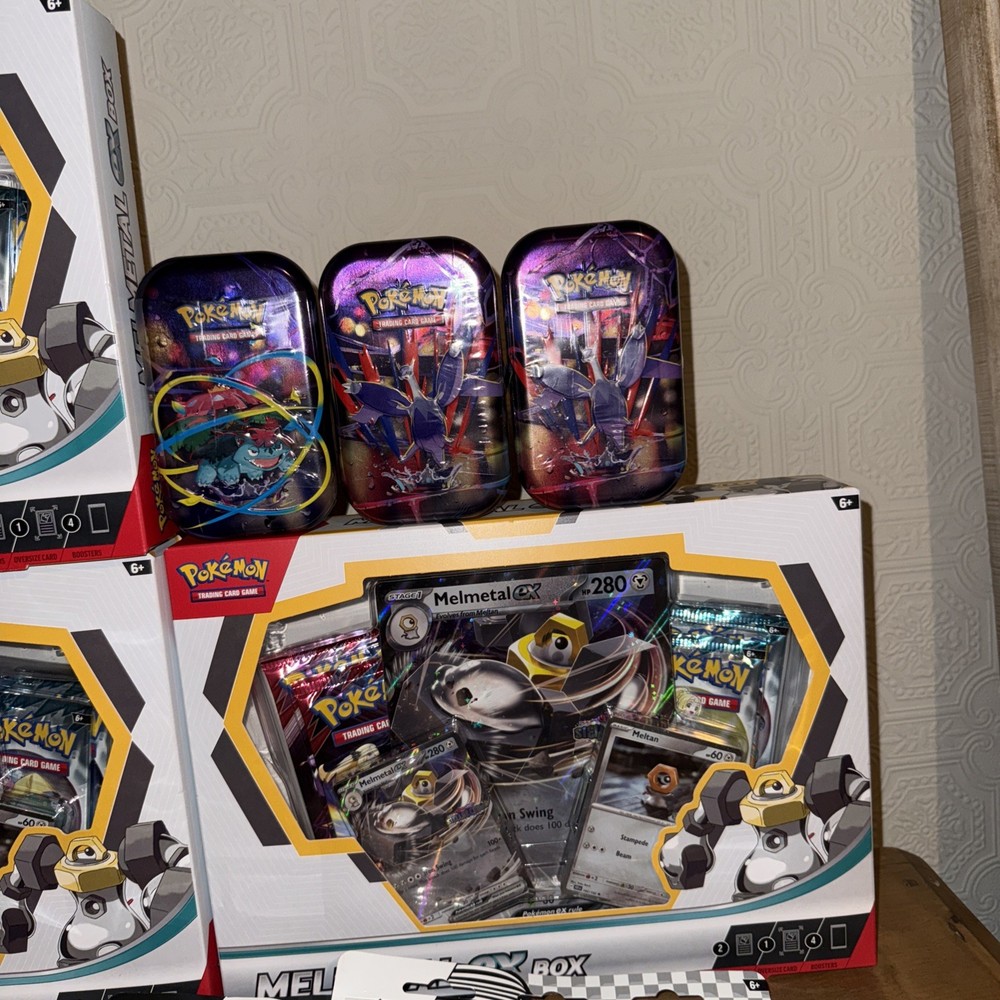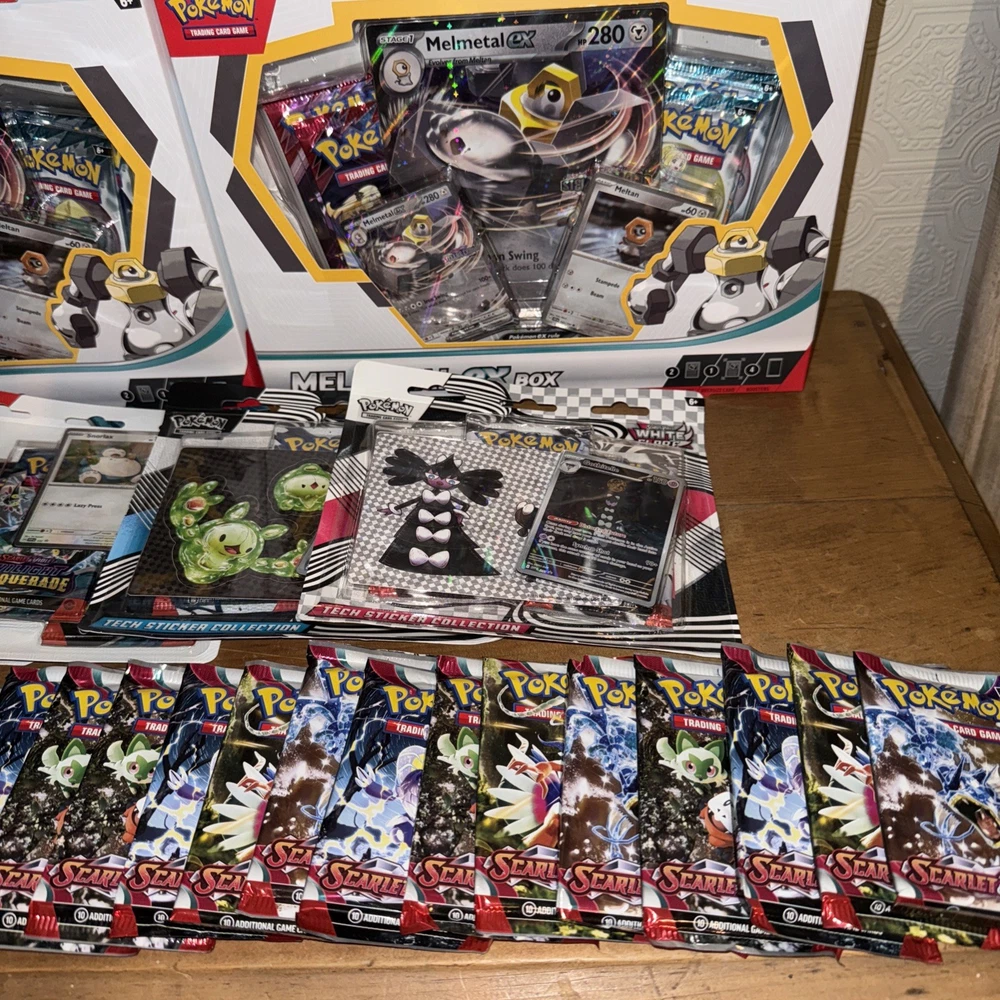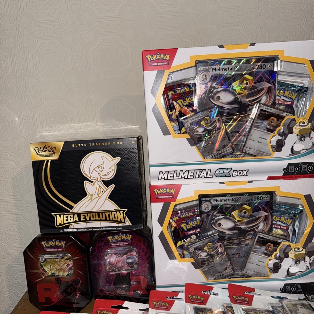 This Pokémon Bundle includes a variety of sealed products such as Elite Trainer Boxes, Booster Boxes, and Tins. Featuring cards from the Scarlet & Violet set, this collection is perfect for Pokémon TCG enthusiasts. 1 x Elite Trainer Box 2 x Destined Rivals Team Rocket Tins 3 x Melmetal ex Box 30 x Booster packs 3 x Mega Evolutions Mini Tins 2 x Black and white Blister packs 5 x Twilight Masquerade Blister Pack Manufactured by Nintendo and illustrated by The Pokémon Company Art-team, this bundle offers a chance to collect and trade standard-sized cards in English. Whether you're attending a Pokémon League event or simply looking to expand your collection, this bundle has something for every fan of the game.