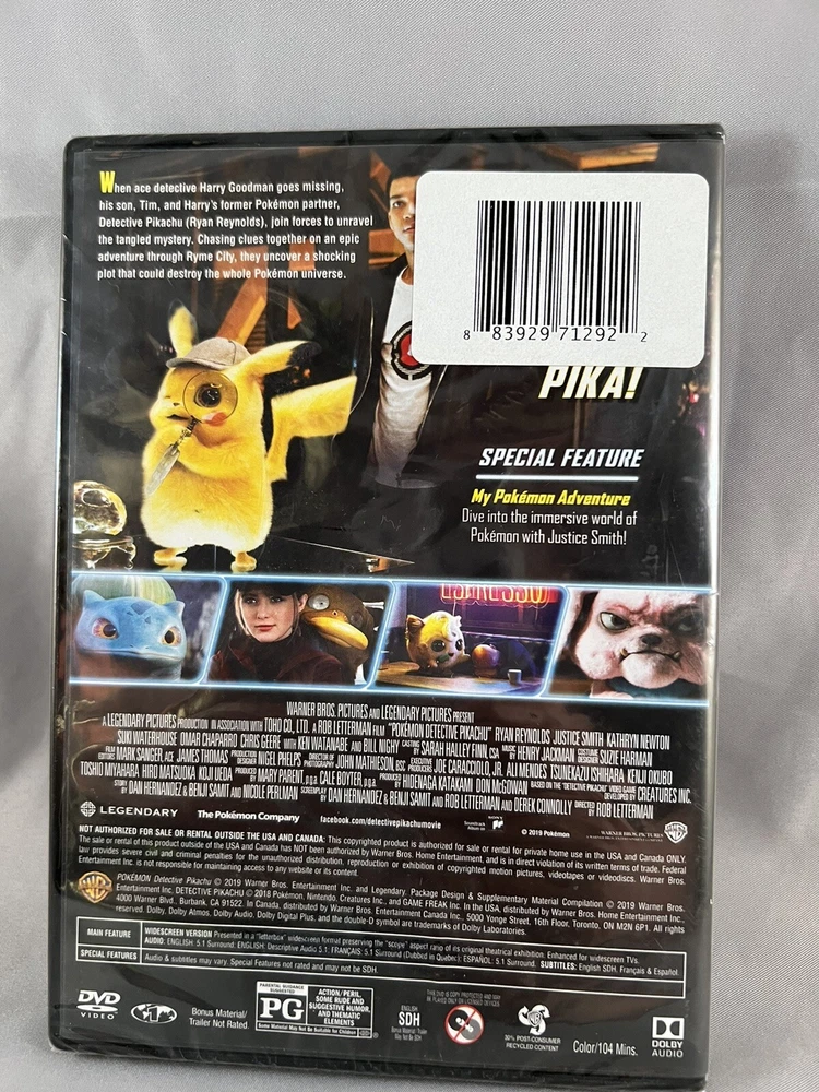 Pokémon Detective Pikachu (DVD, 2019) New & Sealed- Unsure Of Code- S17-2.