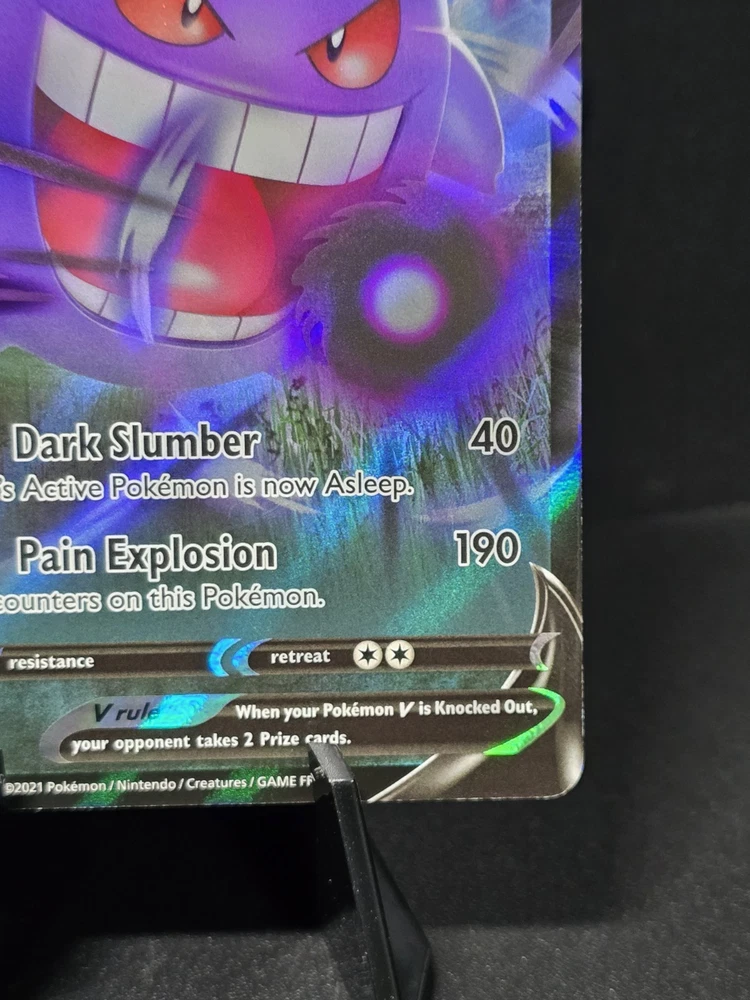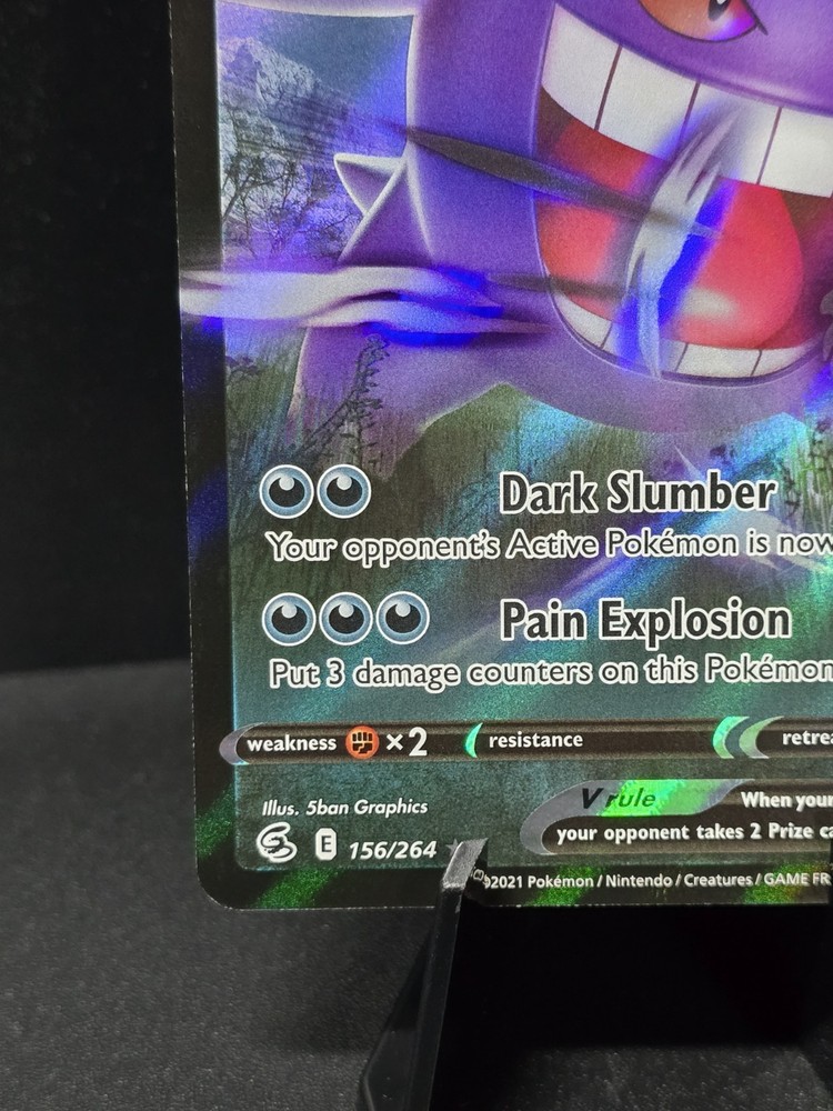 GENGAR V #156/264 ULTRA RARE FULL ART FROM FUSION STRIKE IN EXCELLENT CONDITION!!! CONDITION SHOWN IN PICTURES!!! ALL CARDS ARE DOUBLE SLEEVED AND TOP LOADED OR PUT IN A CARD SAVER BEFORE SHIPPING!!!