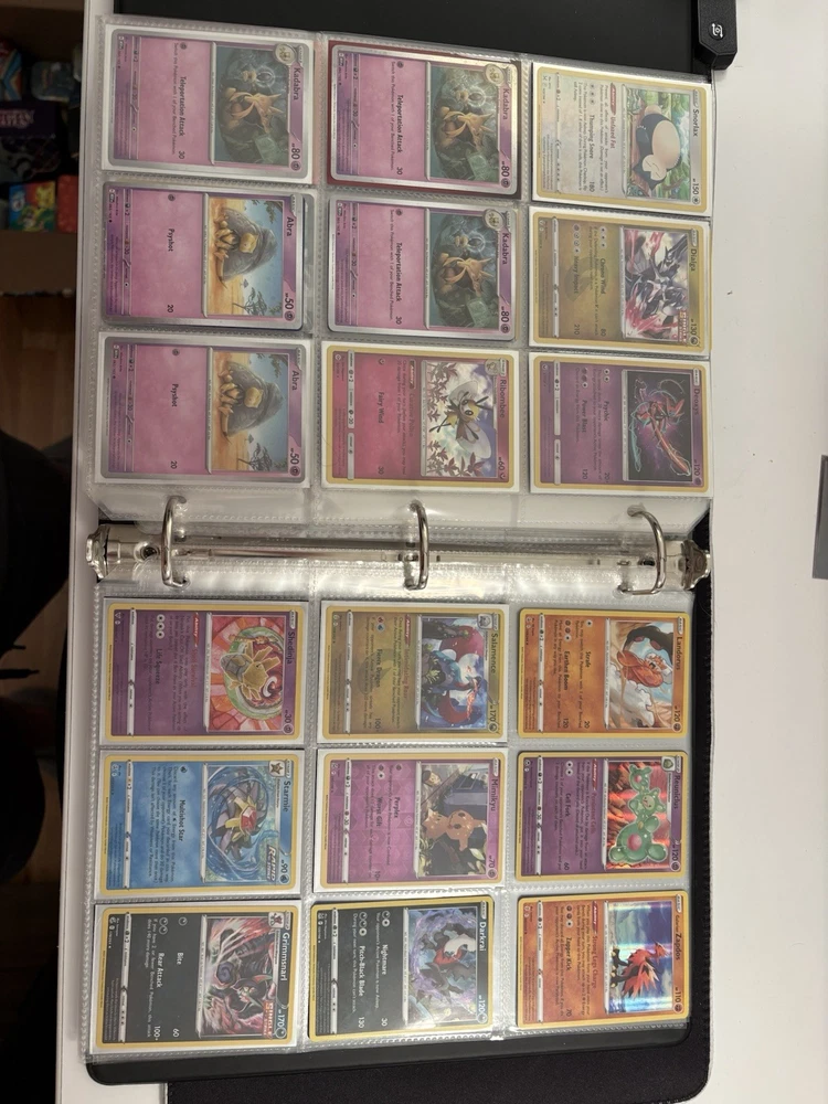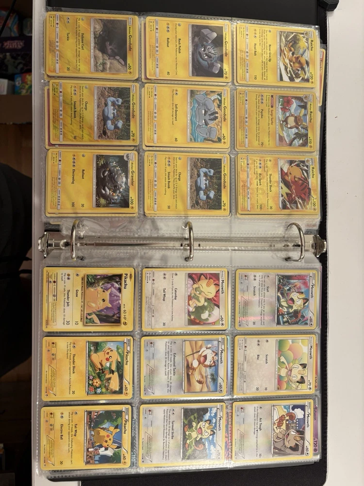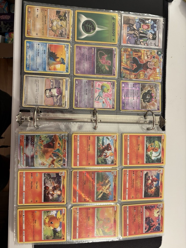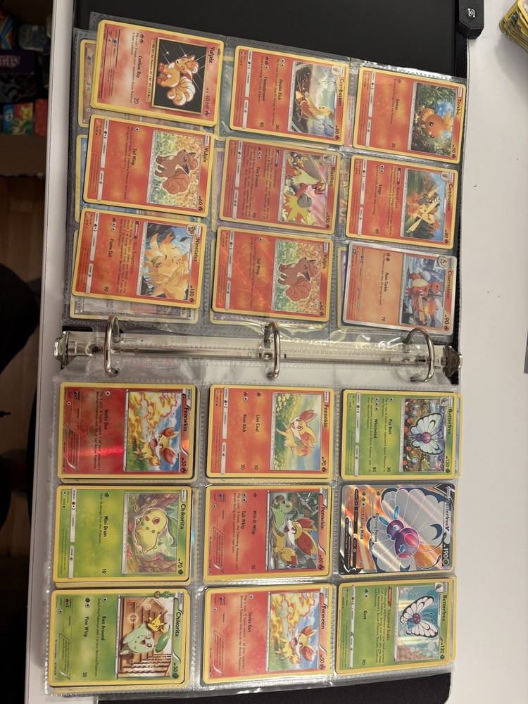 Card condition varies largely based on era, but all of them that I handled were clean, no damage and everything feels very crisp, and even some of the older cards are near mint (that full art Holo Entei is especially nice!) Fun card combos organized with different methodology. Great starter set. Lots of potential resell value for anyone who wants to separate out. Many cards have multiple copies. As many as six! Twenty four pages filled on both sides! Happy bidding. Follow for more unique cards and lots 🙂