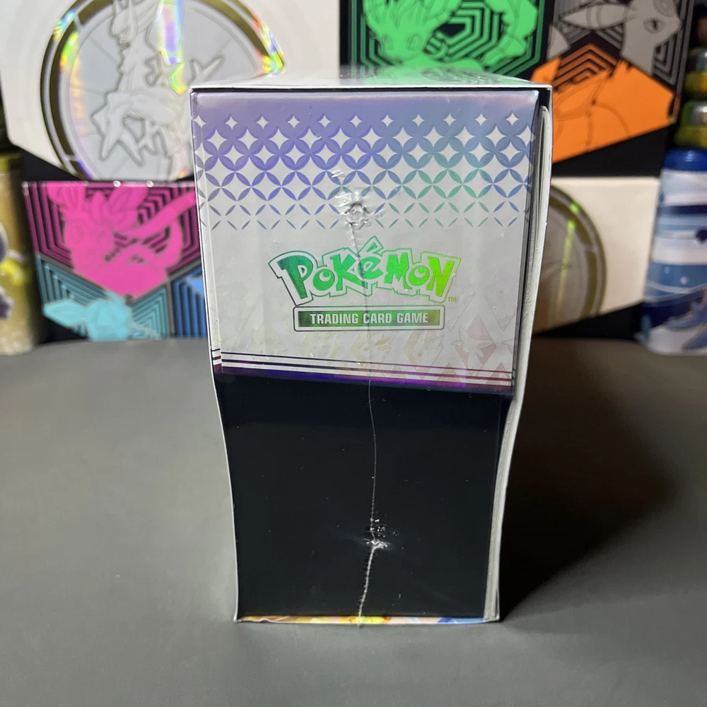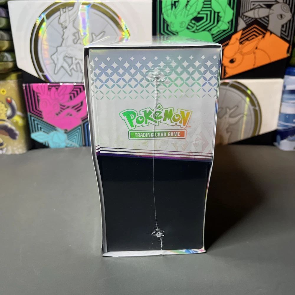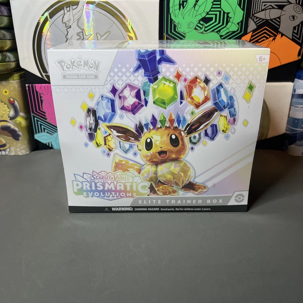 Eevee & Friends Light Up with Stellar Colors! From fluffy and fiery to freezing and fanciful, Eevee and its many Evolutions hold a special place in the hearts of Pokémon Trainers across the land! Discover their unique new powers as Stellar Tera Pokémon ex, and look for treasure of your very own across a grand gathering of Pokémon ex from Paldea and beyond. Glittering gems and hidden patterns await at the end of the rainbow in the Pokémon TCG: Scarlet & Violet—Prismatic Evolutions expansion! . The Pokémon TCG: Scarlet & Violet—Prismatic Evolutions Pokémon Center Elite Trainer Box includes: •9 Pokémon TCG: Scarlet & Violet—Prismatic Evolutions booster packs •Each booster pack contains 10 cards and 1 Basic Energy. Cards vary by pack. 1 full-art foil promo card featuring Eevee • 65 card sleeves • 45 Pokémon TCG Energy cards • A player’s guide to the Scarlet & Violet—Prismatic Evolutions expansion 6 damage-counter dice • 1 competition-legal coin-flip die • 2 plastic condition markers • A box to hold everything, with 4 dividers to keep it organized • A code card for Pokémon Trading Card Game Live