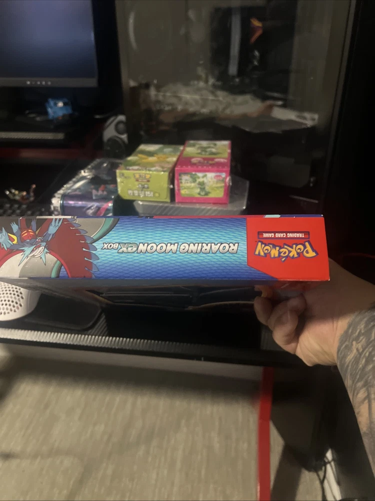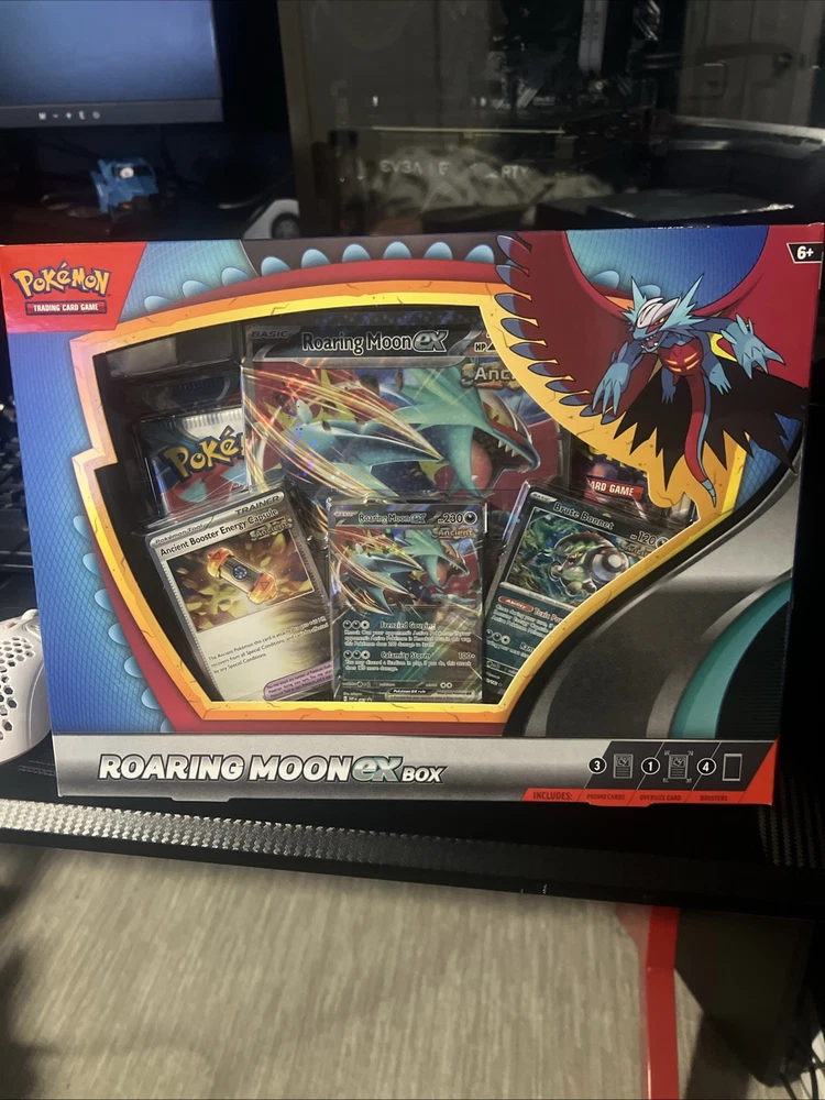 This Pokémon TCG Roaring Moon ex Box is a special edition set from the Scarlet & Violet series, featuring iconic characters like Zapdos, Arceus, and Mimikyu. The box contains 50 English cards, including fan favorites such as Pikachu, Articuno, and Charizard, as well as exclusive full art and extended art cards. Manufactured by Nintendo in 2023, this limited edition box is perfect for collectors and fans of the Pokémon TCG, offering unique artwork and 1st edition cards to add to your collection.