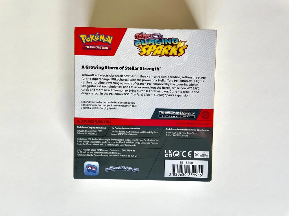 Unleash an electrifying storm with the Scarlet & Violet – Surging Sparks Booster Bundle ! This set features six factory-sealed booster packs , each filled with exciting new Pokémon, including Stellar Tera Pokémon ex, Alolan Exeggutor ex, Archaludon ex, Latias ex , and more. Experience the thrill of ACE SPEC cards and powerful dragon Pokémon in this must-have expansion! 🔥 What’s Inside: ✅ 6 Pokémon TCG Booster Packs – Expand your collection with powerful new cards! ✅ New & Exclusive Pokémon – Featuring Stellar Tera Pokémon ex & ACE SPEC cards ✅ Exciting Expansion – Part of the Scarlet & Violet series ✅ Sealed & Authentic – Factory-fresh packs for collectors and players ✨ Brand New & Factory Sealed | Fast Shipping | Perfect for Collectors & Competitive Play! 🛒 Add to your Pokémon TCG collection today!
