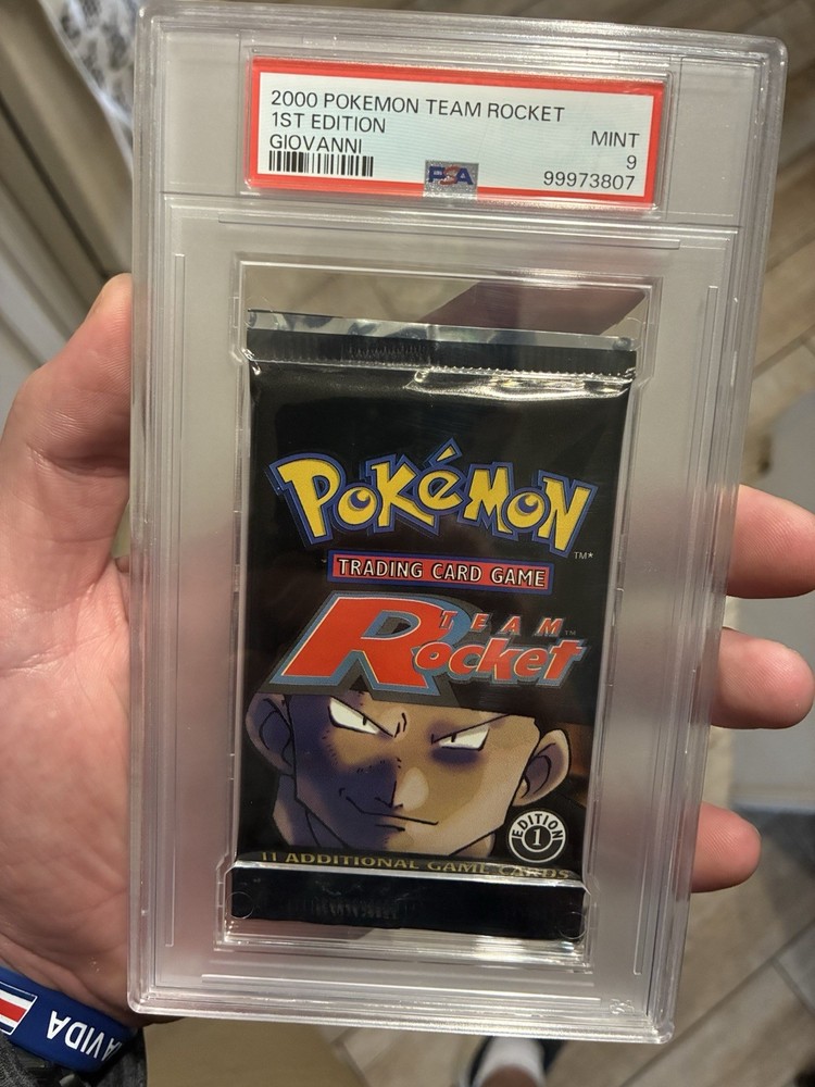 Pokémon Team Rocket 1st Edition Booster Pack Giovanni PSA 9 2000 English WOTC Last one sold for 780$ a few weeks ago, message me with offer if interested