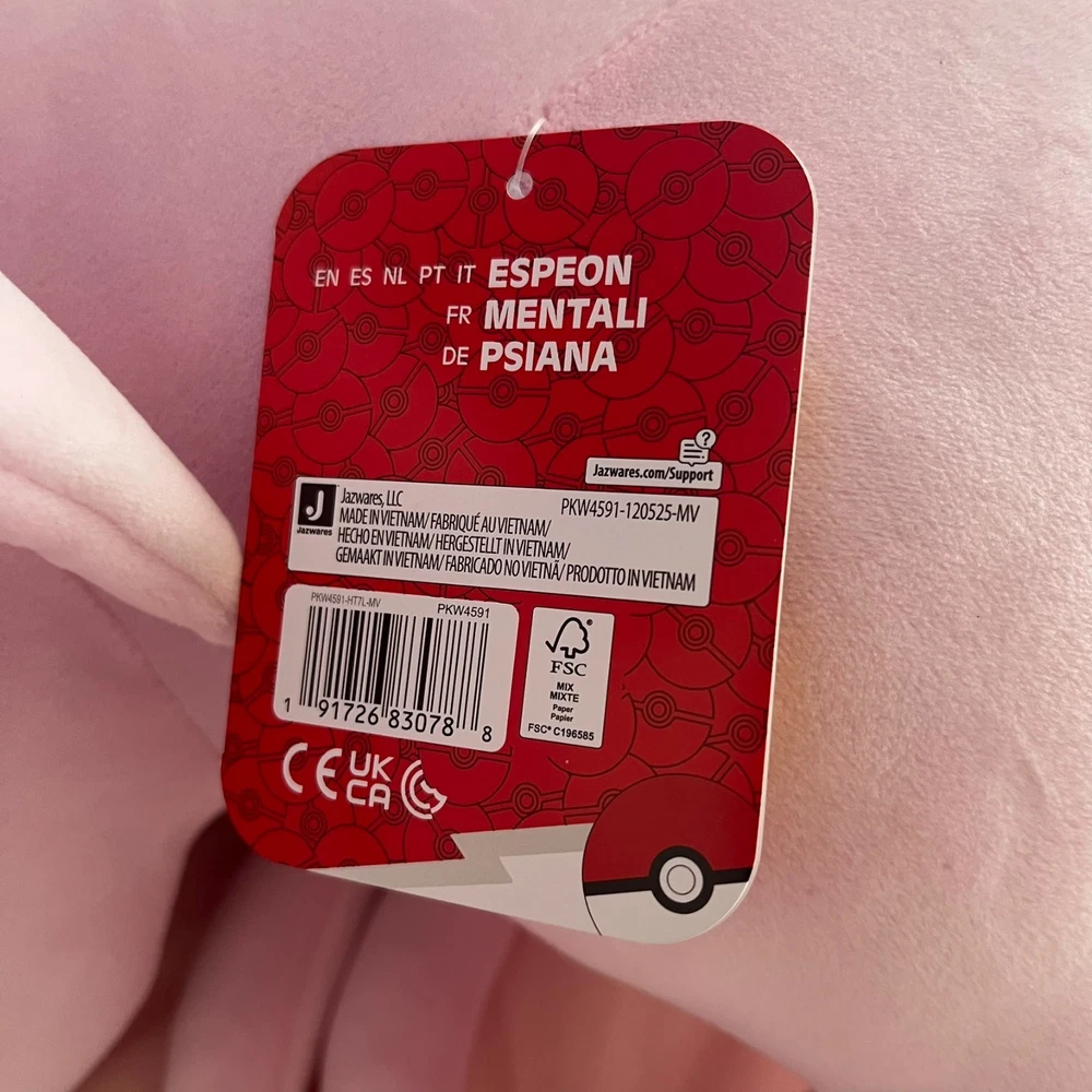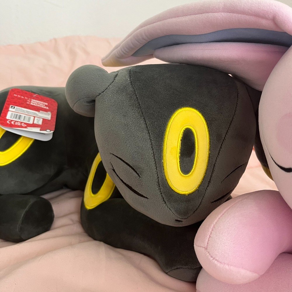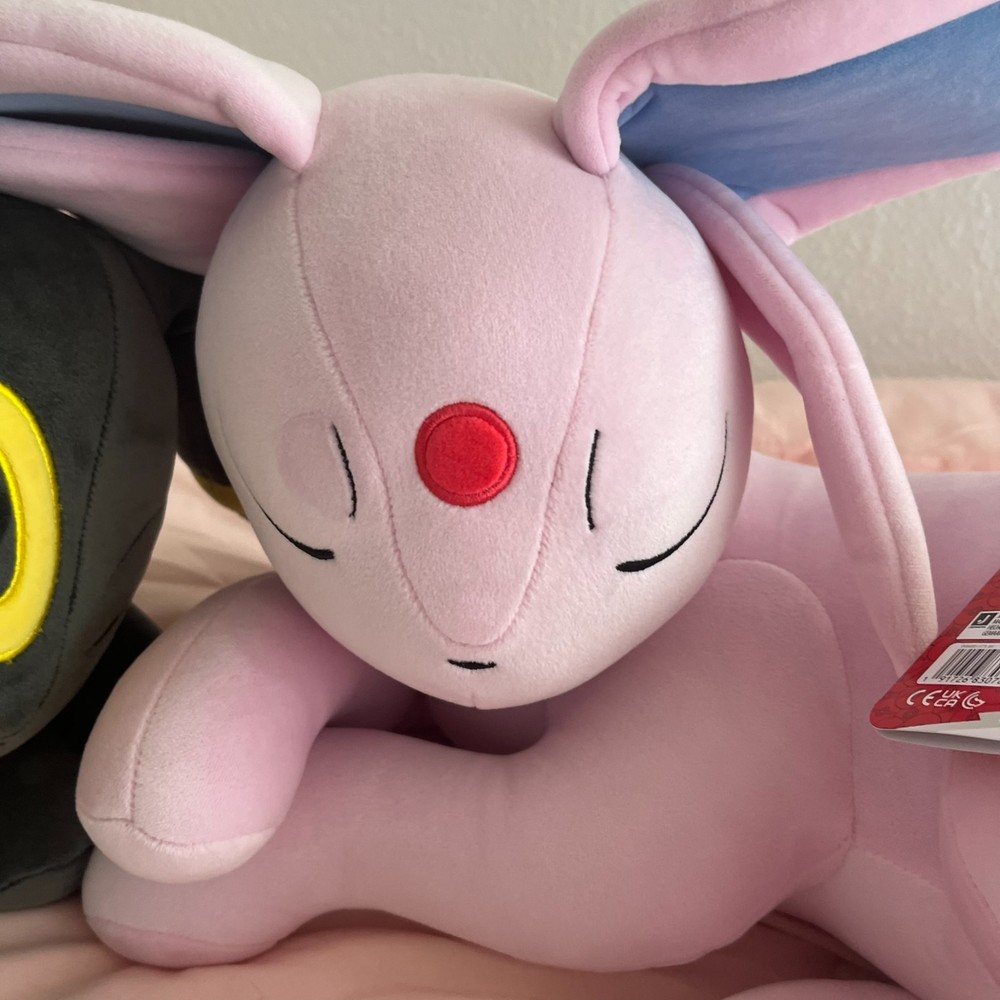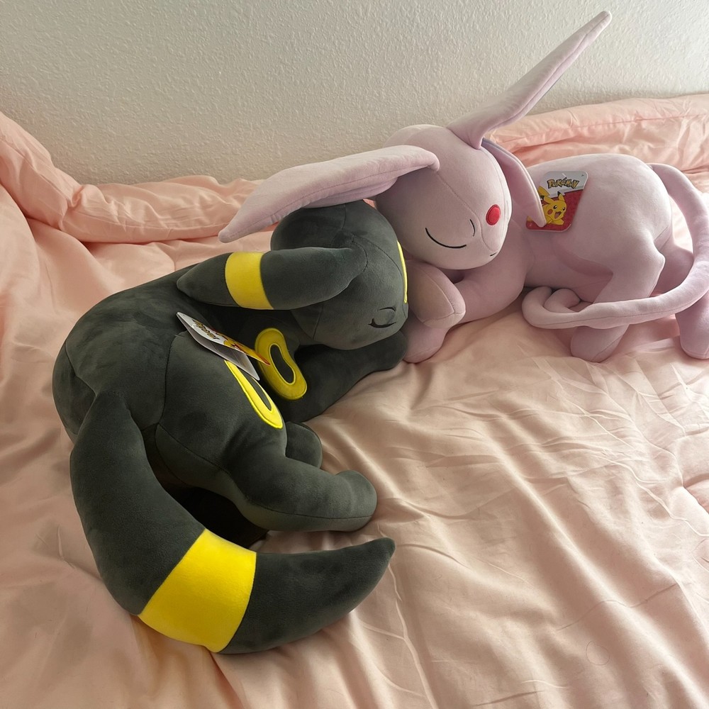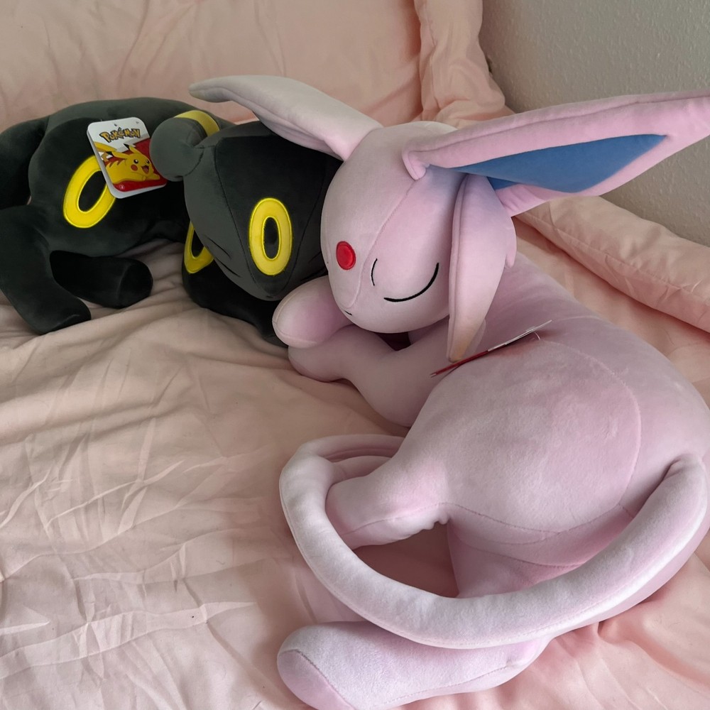 The Pokémon UMBREON & ESPEON Sleeping Plush by Jazwares is a cuddly and colorful stuffed animal featuring the popular characters from the Pokémon franchise. Standing at 18 inches tall, this plush toy is made from soft material and showcases the pink color of Espeon. Perfect for fans of the Pokémon TV show and movie, this adorable collectible is a must-have for any animation enthusiast. With its high-quality design and attention to detail, this plush is sure to bring joy to collectors and fans alike.