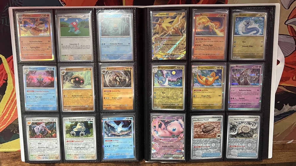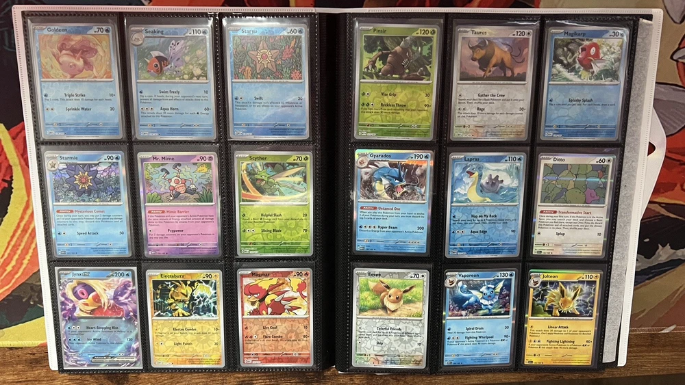 165/165 reverse or* holo rare cards from Pokémon Scarlet and Violet 151 set (one of either version). Included are holo energy set snorlax etb promo. Mew and Mewtwo UPC promo. 177 cards in total. Official Scarlet and Violet 151 binder No full art, or (special ) illustration rare cards included. Cards are pack fresh and rated as near mint. Cards are holographic are also penny sleeved prior to placement in binder. Any questions don’t hesitate to contact.