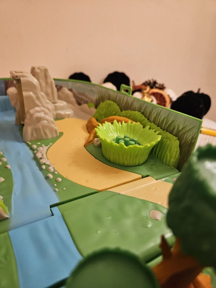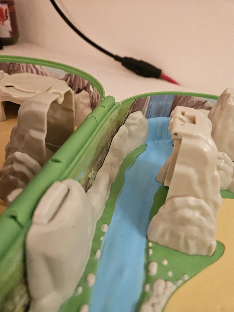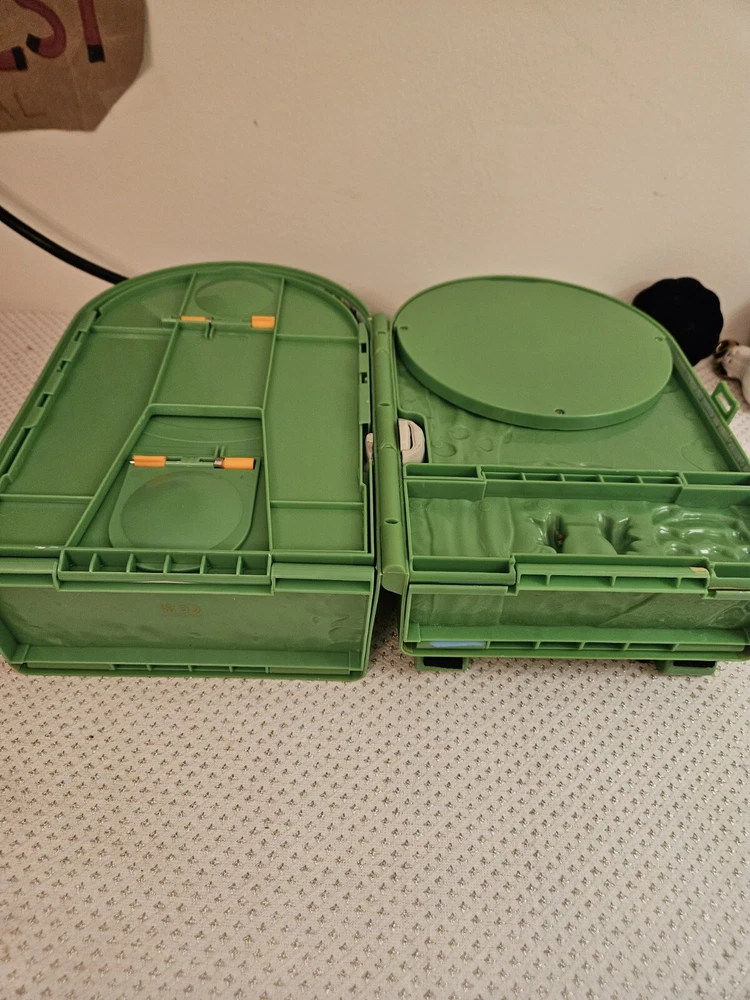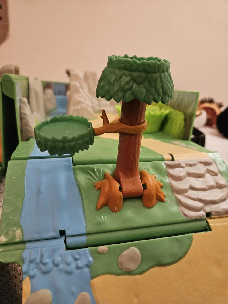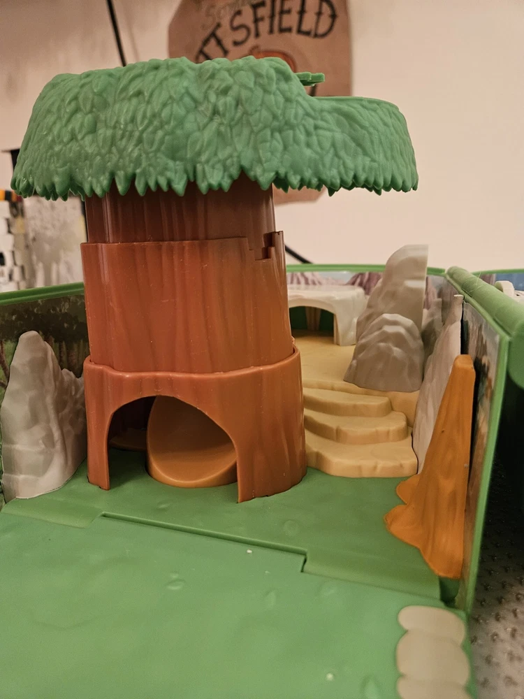 Get ready to catch 'em all with this Pokemon backpack playset! Perfect for any young fan of the popular TV show, this green plastic backpack features the iconic Pokemon franchise and is sure to become a favorite accessory. The playset includes a variety of moving parts and expands into a much larger play area. This set is in good play condition - a few wear marks on the outside, and it appears to be missing a bridge piece to connect the sides. All the moving pieces seem to be intact, would be great for a gift for a child with pokemon figurines, or for an adult for a walk down memory lane.