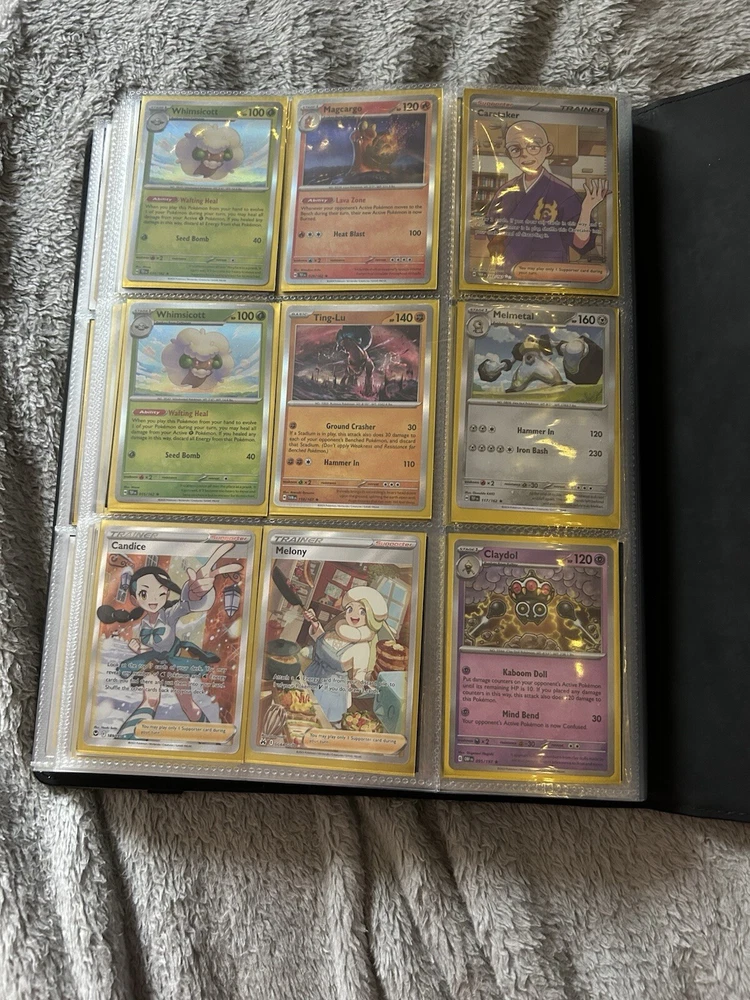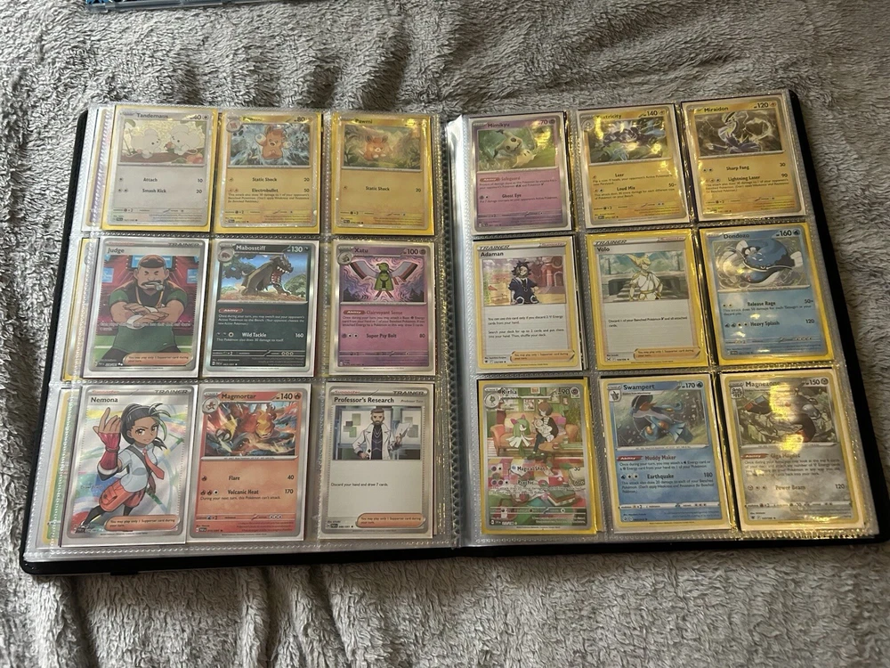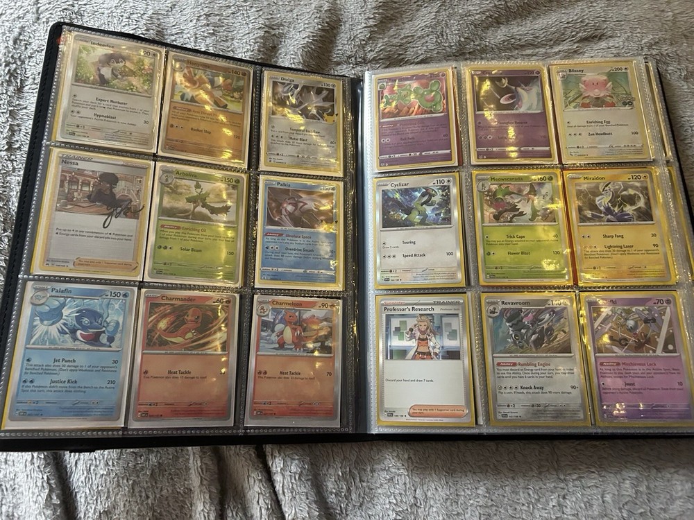 360 pokemon cards (all Holos) in binder, 18 giant pokemon cards- unplayed MINT, 2 evolution card sets, and a bag of pokemon figures. Sold as lot.