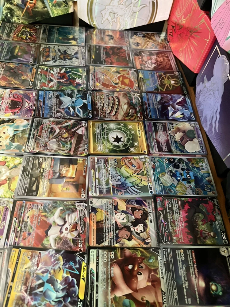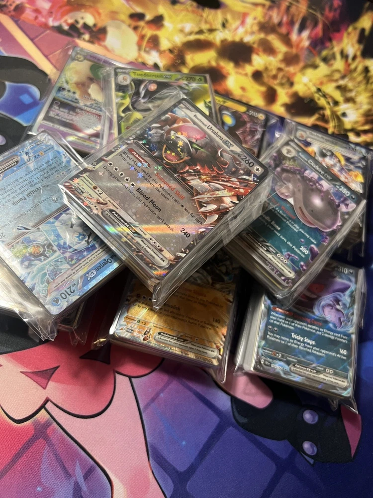 Number of Cards: 100 UPC: Does not apply Age Level: 6+ Character: Blastoise, Charizard, Eevee, Gengar, Lucario, Mega EX, Mewtwo, Pikachu, Rayquaza, VSTAR, Venusaur gtin13: Does not apply Card Name: Charizard, EX, MEga, Popular Pokemon Cards, VMAX, Vstar Card Size: Standard Finish: Foil, Holo, Regular Autographed: No Custom Bundle: Yes Language: English Game: Pokémon TCG Card Type: Pokémon Vintage: No Card Condition: Near Mint or Better Manufacturer: Pokemon Set: Black & White, Scarlet & Violet, Sun & Moon, Sword & Shield