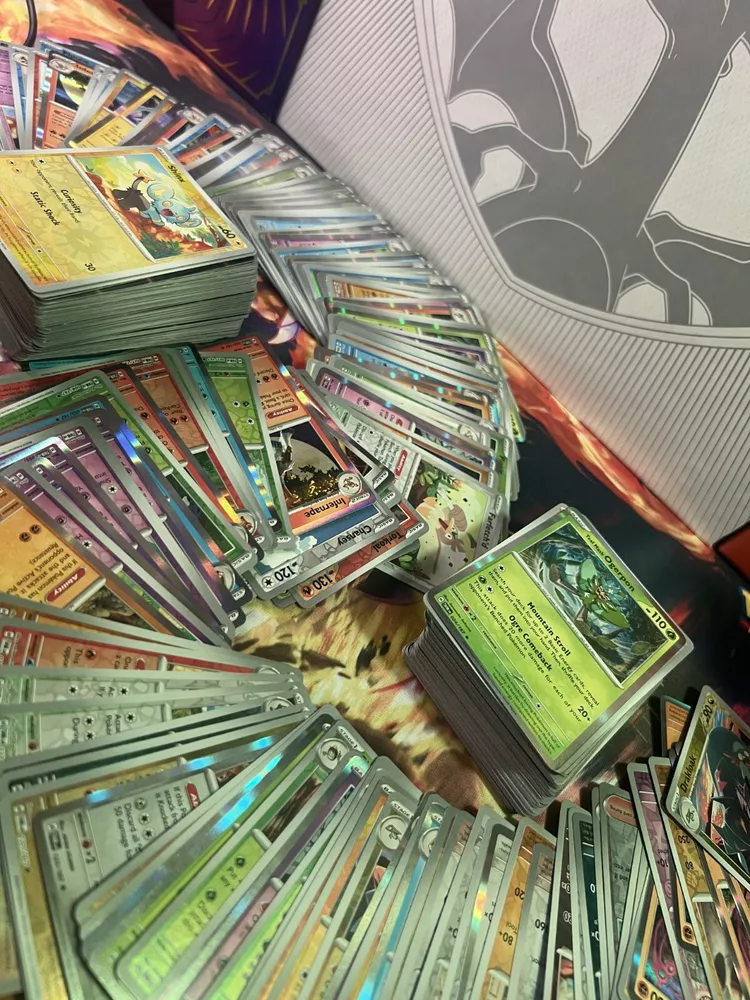 POKEMON CARD LOT 200 OFFICIAL TCG Cards + TWO(2) Ultra Rare, Full Arts, EX, GX, V, VStar, VMax, etc! Each 200 Card Lot includes : TWO(2) ULTRA RARE FULL ARTs, EX, GX, V, Vstar, VMax,etc! PLUS... 190 - Assorted Common & Uncommon Cards (Pokemon Cards/Pulled from 6-8 Different Sets to help prevent duplicates) 10 - Mixed Holo Rare/Reverse Holo Cards !ZERO BASIC ENERGY CARDS! All our cards are brand new, never played, English cards, no basic energy at all, and and great mix of card from sets within Sun & Moon, Black & White, Sword & Shield all the way to the latest series sets in Scarlet & Violet including Paldean Fates, Paldea Evolved, Twilight Masquerade, 151, Paradox Rift, Stellar Crown, Surging Sparks & more! It is extremely to us that you are 100% Satisfied with your purchase. If anything about your purchase could have been improved, or if there are any problems at all with your order, please contact us immediately, and we will make sure to make it right!