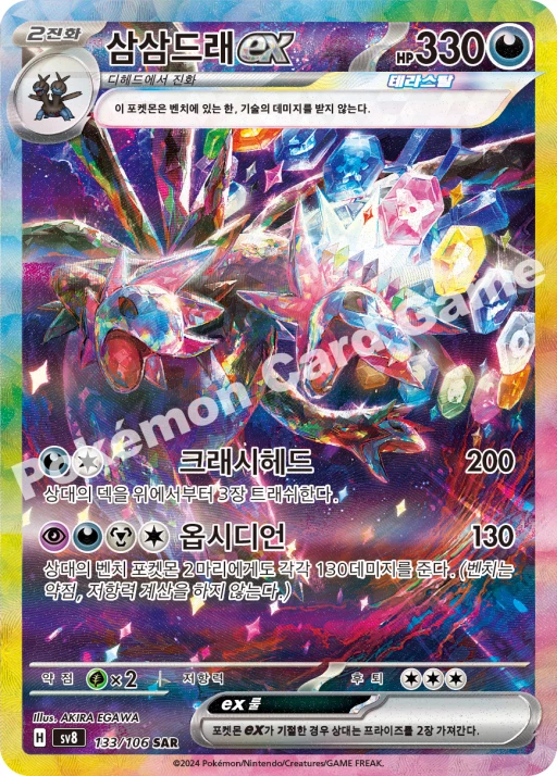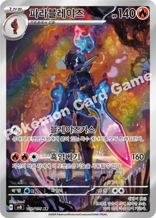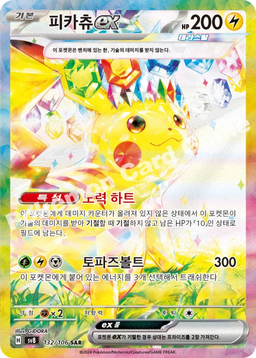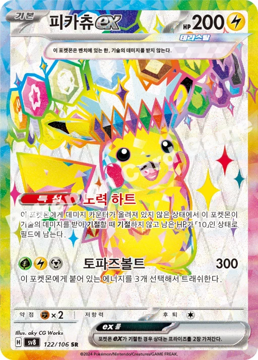 Number of Packs: 2 Language: Korean Card Size: Standard Features: Booster Manufacturer: Nintendo Configuration: Pack Number of Cards: 15 Country/Region of Manufacture: Korea, Republic of Year Manufactured: 2024 Character: Clemont, Dugtrio, Durant, Eevee, Espeon, Feebas, Flareon, Glaceon, Hydreigon, Jasmine, Jolteon, Kecleon, Larvesta, Leafeon, Magneton, Mesprit, Milotic, Palossand, Phanpy, Pikachu, Slakoth, Spheal, Stunfisk, Sylveon, Umbreon, Vaporeon, Vivillon, Ceruledge, Scovillain, Tatsugiri Vintage: No Game: Pokémon TCG Set: Surging Sparks Material: Paper