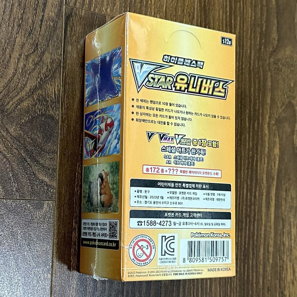 Pokémon TCG - Sword & Shield Series VSTAR Universe [S12A] High Class Expansion Set Booster Box Brand NEW Factory SEALED Korean Version VSTAR Universe is one of the most popular and collectible High Class sets in the Pokémon TCG, featuring an incredible lineup of chase cards and premium artwork. This set is best known for its stunning Art Rare (AR) and Special Art Rare (SAR) cards, making every box an exciting opening experience. Top hits from VSTAR Universe include Arceus VSTAR, Giratina VSTAR, Dialga VSTAR, Palkia VSTAR in a full alternative art, gold textured foil Hyper Rare / Ultra Rare (UR) rarity. Mewtwo VSTAR, and Charizard VSTAR Full/Alternate Art Special Illustration Rare - Special Art Rare (SAR) versions are also highly sought-after chase cards. This set also has the chance to contain a "God Pack" featuring 9 connecting F ull Art/Alternate Art - Art Rare (AR) cards—including Pikachu in the center. This set contains a wide variety of AR, SAR, SR, and UR cards, making it a must-have for collectors, investors, and players alike. VSTAR Universe is partially equivalent to the English Crown Zenith set and identical to the Japanese VSTAR Universe release. DETAILS: Factory Sealed / Brand New Unopened factory sealed packaging x1 VSTAR Universe Booster Box Contains 10 Packs Factory sealed condition. VSTAR Universe is a "High Class" expansion set with 10 packs per box—unlike standard sets with 30 packs per box. x1 VSTAR Universe Pack Contains 10 Random Cards / 1 Guaranteed V, VMAX or VSTAR Card Each booster pack contains 10 random Pokemon TCG cards from the VSTAR Universe Set Each booster pack is guaranteed to have at least 1 V, VMAX or VSTAR Card. Some packs may have more than 1! Cards are random as factory sealed. No guarantees for a specific card. This listing is for x1 booster box. Please check the quantity of the items before purchasing if you wish to purchase more! Orders are typically shipped within 3-5 working days (not to be confused with the delivery timeframe). SHIPPING INFO: Multiple orders are combined into one shipment. Shipped with Standard Shipping Tracked and typically takes 5-15 business days. CUSTOMS AND DUTIES: For buyers in the United States: Import duties and taxes are included in the item price or shipping cost. Items shipped to the U.S. are sent under the Delivered Duty Paid (DDP) method, which means all import-related charges are prepaid by us. You don’t need to pay any additional fees when your order arrives. For buyers outside the United States: Import duties, taxes, and charges are not included in the item price or shipping cost. These charges are the buyer’s responsibility. If VAT is paid through eBay, then you should not expect to pay it again upon arrival. Please check with your country’s customs office to determine what these additional costs will be before bidding or buying. Please reach out to us if you have any questions and we will be happy to sort things out for you!