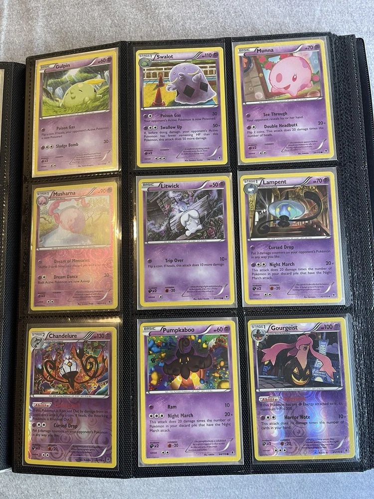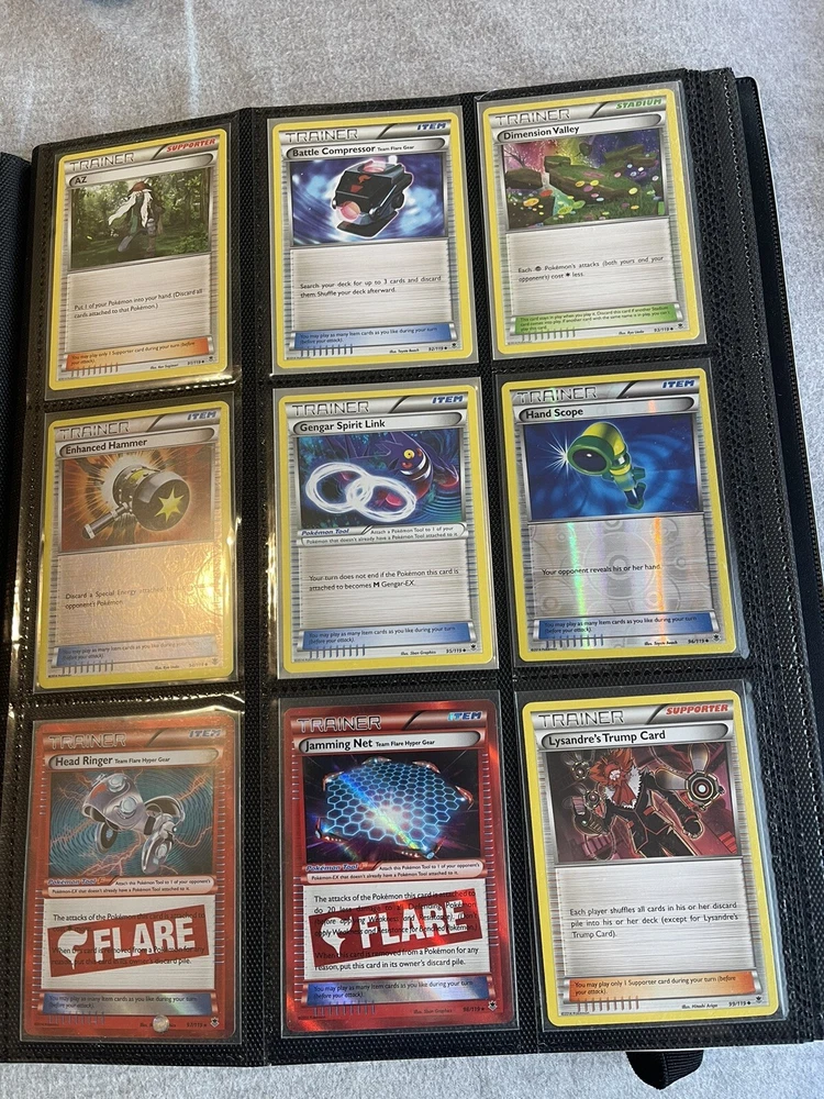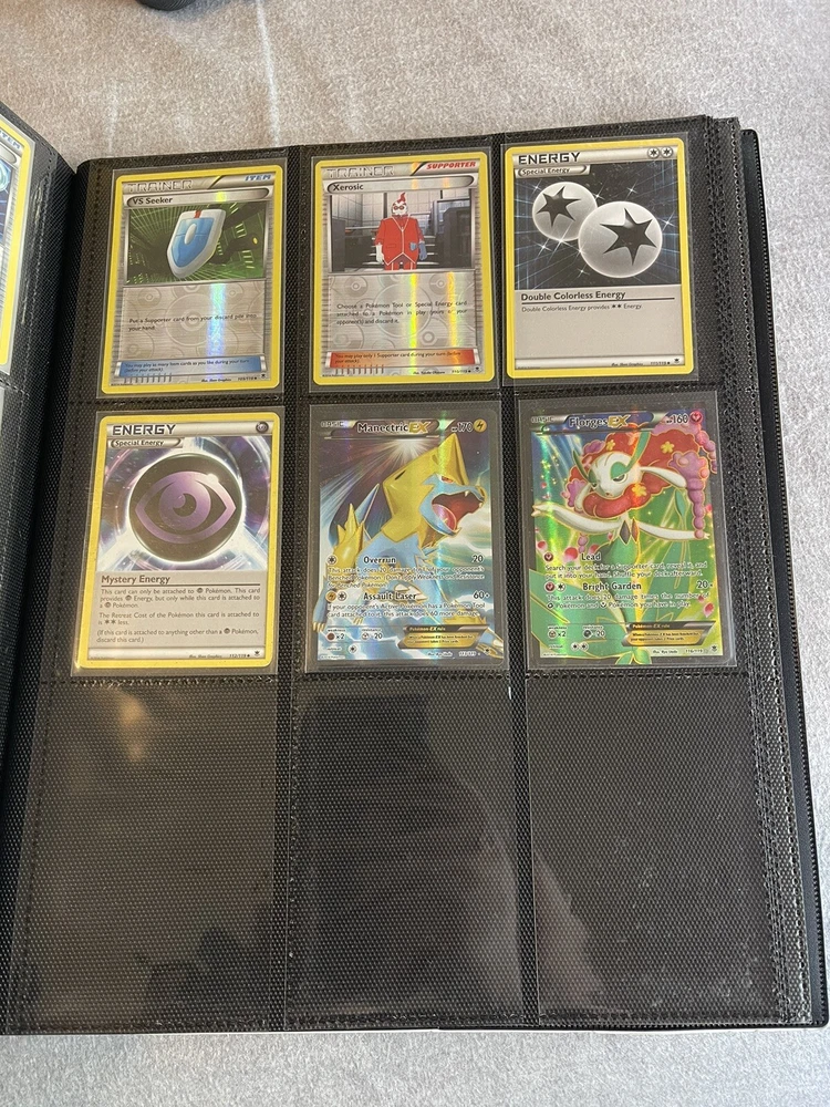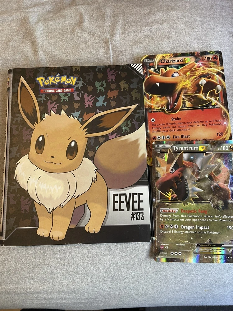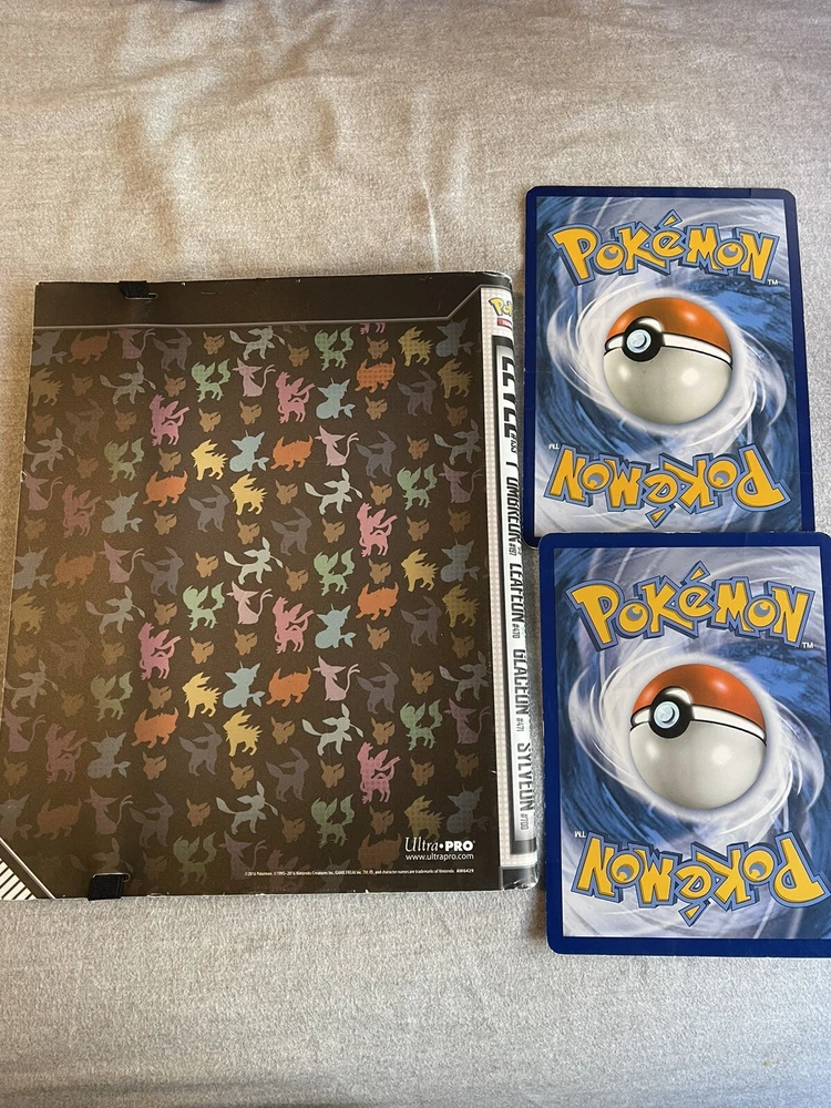 Pokemon cards with Eevee binder . Lightly used. It’s almost a complete set of XY Phantom forces It has most of the cards that are within the set It’s a good amount of collection with Ex cards included and Jumbo Charizard EX card. Gengar ex M Gengar Japanese card is moderately played. No returns. Final sale. Local pickup is available. This Pokemon Trading Card Game Eevee Binder/Portfolio comes with a set of cards and is perfect for collectors and fans of the franchise. The binder is designed with a 9-pocket system, providing ample storage space for your cards. The multicolor Eevee design is eye-catching and adds a touch of fun to your collection. The binder is compatible with standard-sized cards and is suitable for ages 13 and up. It is an Ultra PRO brand product, ensuring quality and durability. This item is perfect for those who love the Pokemon TV show and are interested in collecting cards.