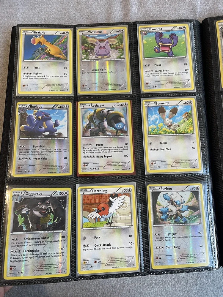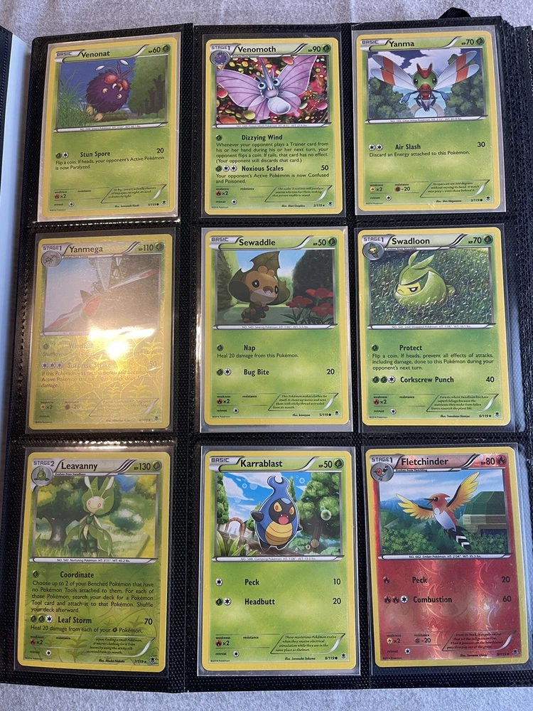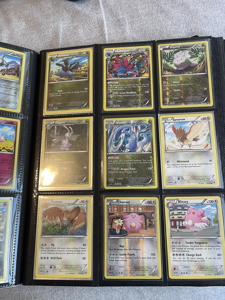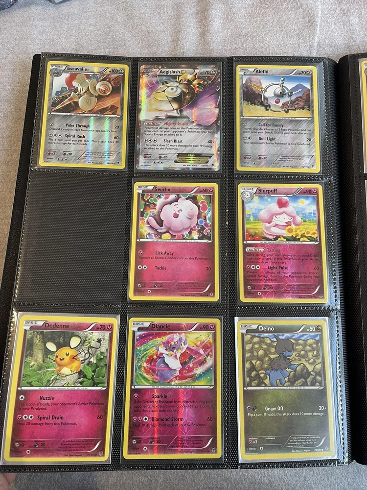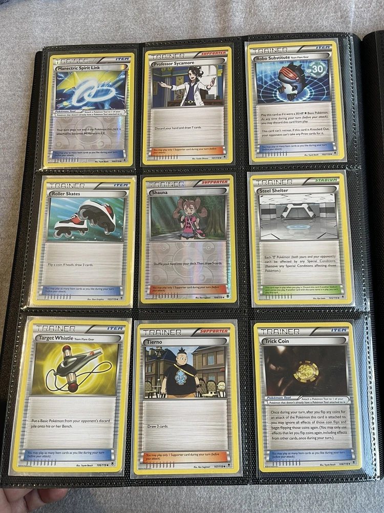 Pokemon cards with Eevee binder . Lightly used. It’s almost a complete set of XY Phantom forces It has most of the cards that are within the set It’s a good amount of collection with Ex cards included and Jumbo Charizard EX card. Gengar ex M Gengar Japanese card is moderately played. No returns. Final sale. Local pickup is available. This Pokemon Trading Card Game Eevee Binder/Portfolio comes with a set of cards and is perfect for collectors and fans of the franchise. The binder is designed with a 9-pocket system, providing ample storage space for your cards. The multicolor Eevee design is eye-catching and adds a touch of fun to your collection. The binder is compatible with standard-sized cards and is suitable for ages 13 and up. It is an Ultra PRO brand product, ensuring quality and durability. This item is perfect for those who love the Pokemon TV show and are interested in collecting cards.