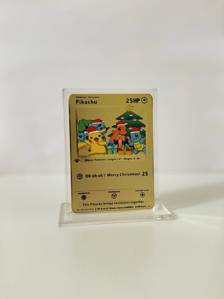 Pokemon Christmas Pikachu METAL GOLD CARD - Gift / Present / Fan Art - New Year
