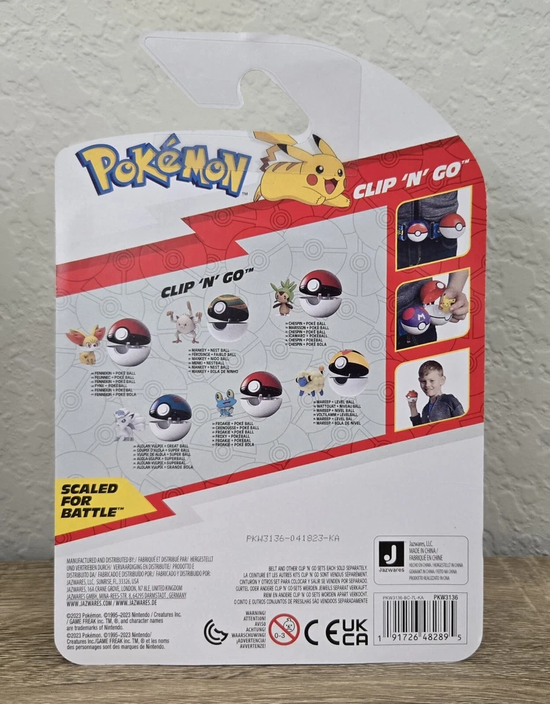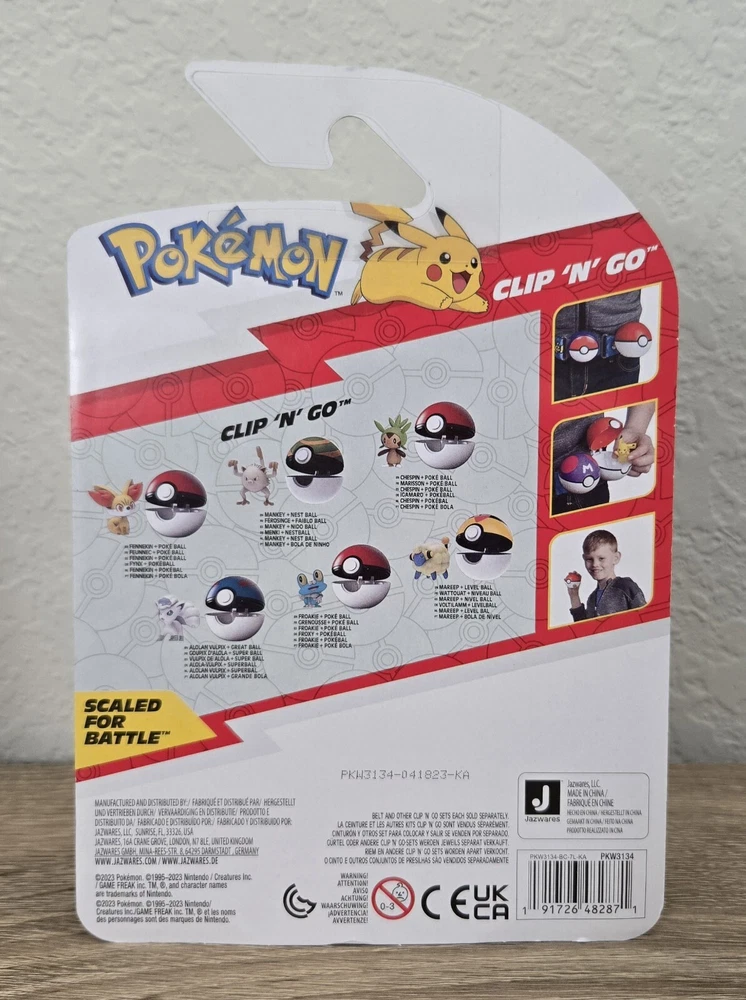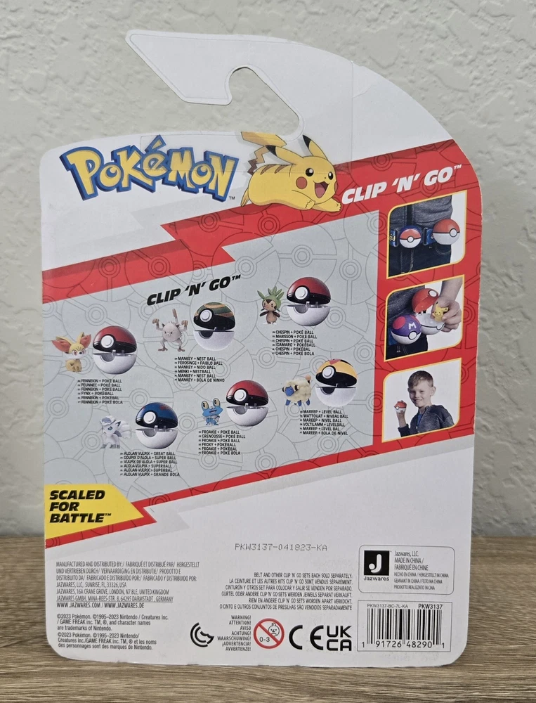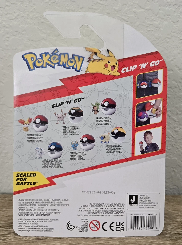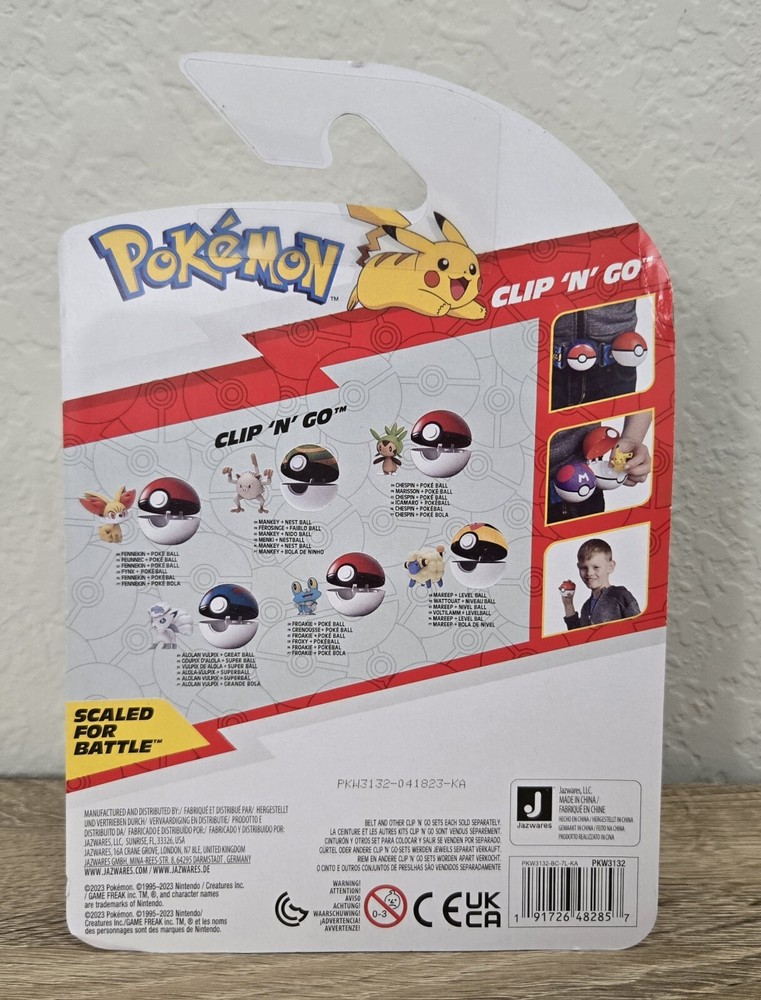 *Free shipping with USPS Ground Advantage. Ships ASAP. Packaged with care. Smoke-free home.* Please note that the Froakie figure is labeled as Mankey on the front label of box (manufacturer misprint). His MPN # is correct. Mankey figure is labeled as Froakie on the front label of box (manufacturer misprint). His MPN # is correct. Also, note that Mareep was shaken loose out of his position but is still in secure packaging. Please refer to the attached pictures. Get ready to battle with the complete set of Pokemon Clip 'N' Go Battle Figures from Wave 14. This set includes six premier balls and six figures of popular characters from the Pokemon franchise, including Fennekin, Mareep, Mankey, Alolan Vulpix, Chespin, and Froakie. Each figure is made from durable plastic and stands at a height of under 2 inches. This set is perfect for collectors and kids alike, and is sure to provide hours of imaginative play. With its TV, Movie & Video Games theme, and features like collectibility and boxed packaging, this set is a must-have for any Pokemon fan. Don't miss out on the chance to own this complete set of Pokemon Clip 'N' Go Battle Figures from Wave 14.