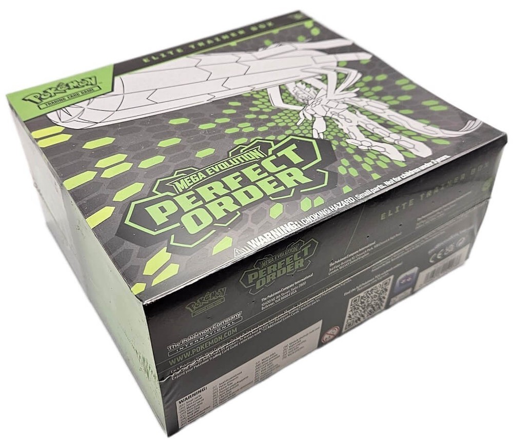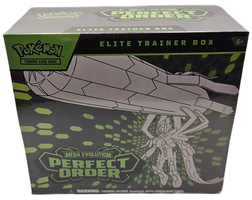 Pokemon: Mega Evolution - Perfect Order Elite Trainer Box Product Description Pokemon - Mega Evolution - Perfect Order Sealed Elite Trainer Box - In Stock and Ready To Ship The pulse of the city beats in sync with the Pokemon and people who call it home-and preserving the order of it all is Mega Zygarde ex, the Legendary Pokemon who embodies strength in numbers! With threatening forces held at bay, peaceful days are ahead for the city's residents, including Pokemon like Mega Clefable ex, Mega Starmie ex, and Meowth ex, in the Pokemon TCG: Mega Evolution-Perfect Order expansion! The Pokemon TCG: Mega Evolution-Perfect Order Elite Trainer Box includes: 9 Pokemon TCG: Mega Evolution-Perfect Order booster packs 1 full-art foil promo card featuring Tyrunt 65 card sleeves 40 Pokemon TCG Energy cards A player's guide to the Mega Evolution-Perfect Order expansion 6 damage-counter dice 1 competition-legal coin-flip die 1 plastic coin A collector's box to hold everything, with 6 dividers to keep it organized A code card for Pokemon Trading Card Game Live