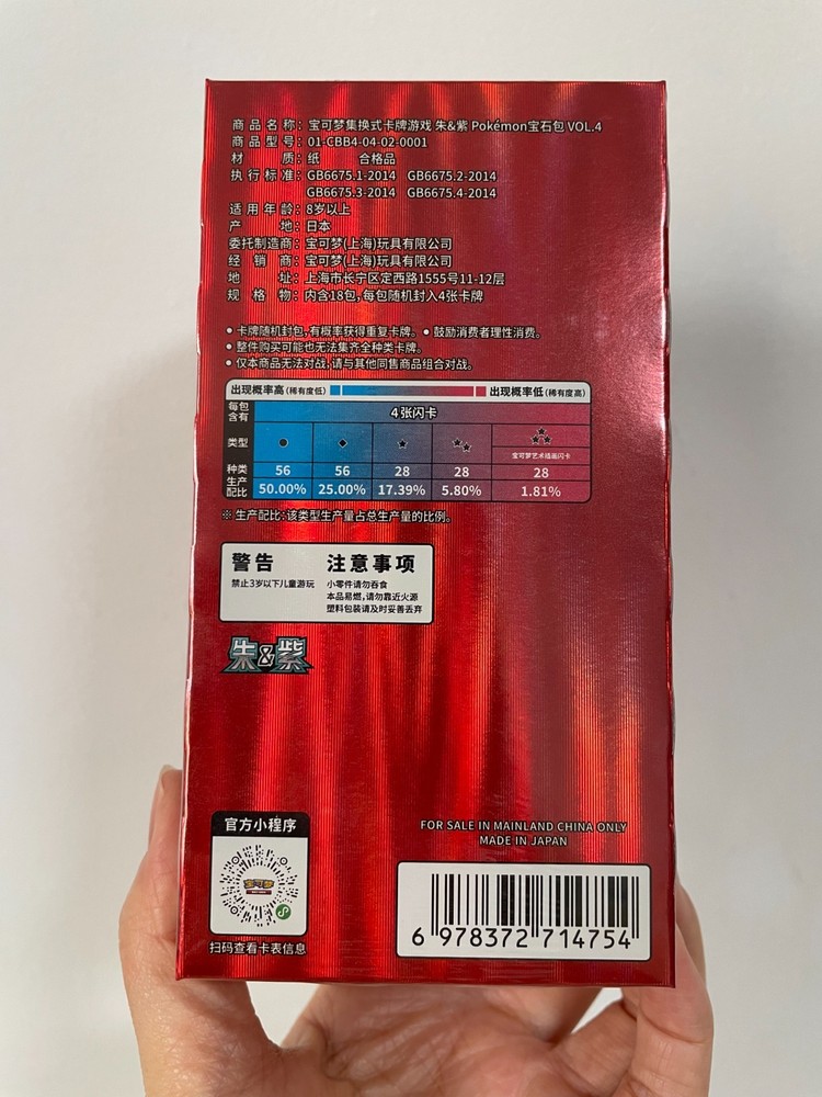 Pokemon PTCG S-Chinese Pokémon Gem Pack Vol.4 CBB4C Booster Box Features: Model: Vol.4 Language: Chinese 100% original and factory sealed Packing: 4 sheet s /pack , 15 packs/box Main material: Paper