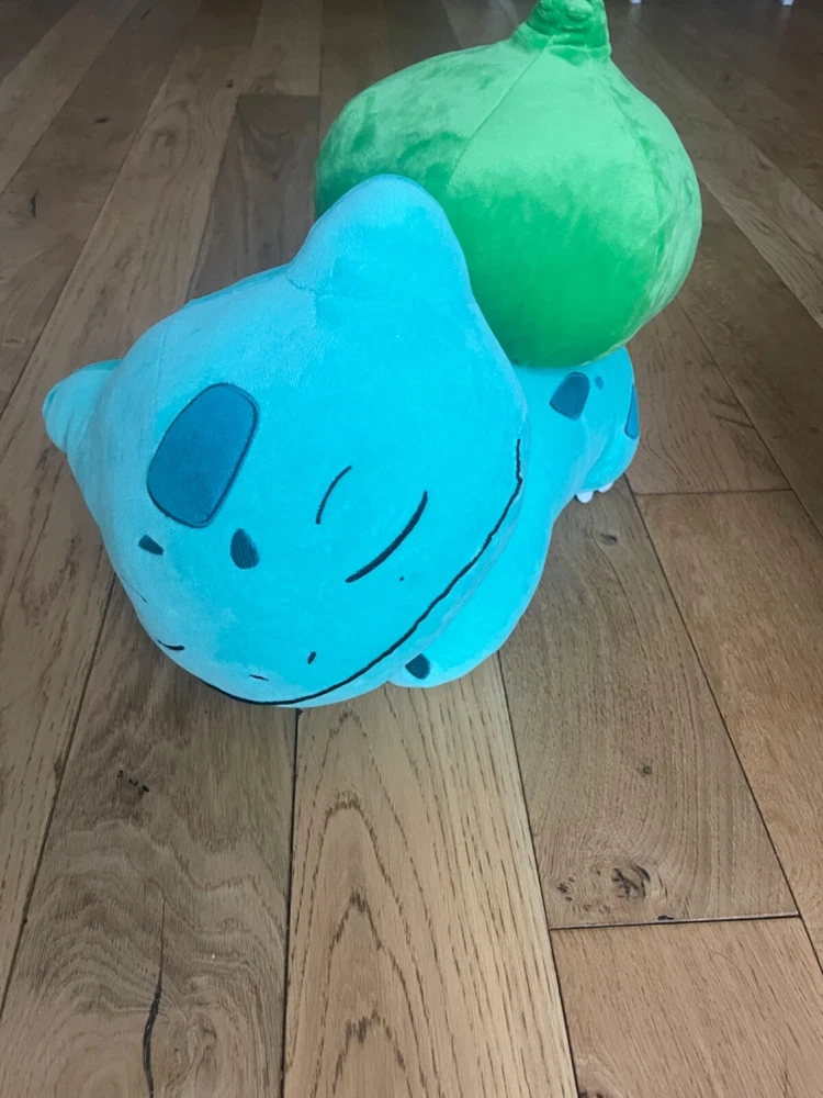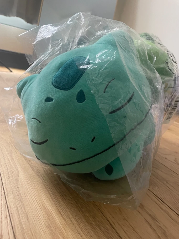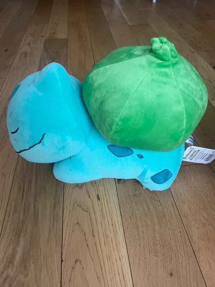 This Pokemon plush toy features a sleeping Bulbasaur design, perfect for fans of the Pokémon franchise. Made from plush material, it is soft and huggable, ideal for any age range. The cute and charming appearance of the Bulbasaur plush makes it a great addition to any collection of Pokémon memorabilia or as a cuddly companion for fans of all ages.