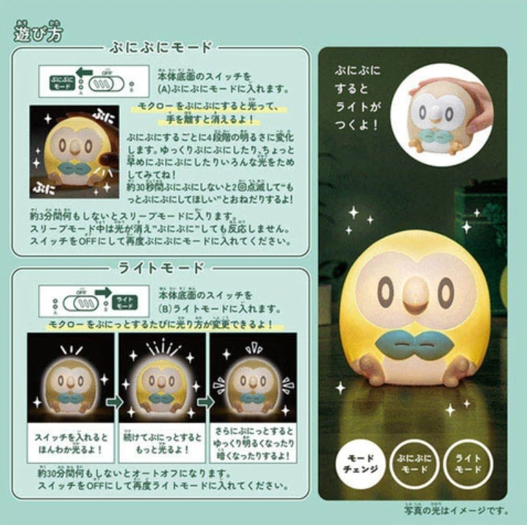 Pokemon Poke Piece Puni Kyun Light Rowlet Room Light Description There are two modes: light mode and squish mode! ★Light mode: The light comes on when you squeeze it!! Y ou can change the light to three levels ★Squish mode When you squeeze it, it will light up in four levels! If you don't squeeze it for a while, it will blink and ask for more squishing! Size: 15×15×10cm Shipping We always send the item with a tracking number. So please place an order without any concern on delivery! You can always track the delivery status. If you have any questions, feel free to ask with me! Shipping is only available to the address registered in eBay. If you want us to send another address, please change your address on eBay and then place an order. Shipping is available from Monday to Friday. Unfortunately, weekends are not available because shipping companies are closed (T^T) International Buyers - Please Note: We do not mark merchandise value lower than value or mark items as "gifts" - Japanese, US, and international government regulations prohibit such practice. Please be advised that import duties, taxes and charges are not included in the item price or shipping charges. These charges are the buyer's responsibility. Please check with your country's customs office to determine what these additional costs will be prior to bidding or purchasing. Thank you for your understanding ^ ^ __________________________________________________________________________________________ Thank you for visiting my page! I hope you will buy again from my store! If you have any questions or requests, please feel free to ask with me ^ ^ Thank you