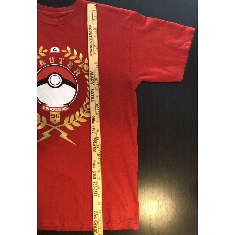 Pokemon PokeMaster League Status EVOLVE OR DIE Pikachu PokeBall TeeFury Medium Lay Flat Measurements * Pit to Pit - 19 1/2" * Shoulder to Hem - 27 1/2" * Arm - 7 3/4"