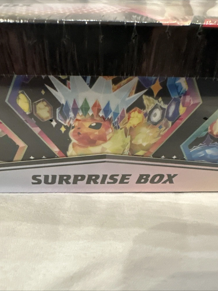 The Pokemon Prismatic Evolutions Surprise Box is a sealed box set featuring the character Eevee from the Pokemon TCG. Manufactured in the United States in 2025, this exclusive edition box contains special cards and features related to the evolution theme. With a display configuration and English language content, this collectible card game item is perfect for collectors and fans of the Pokemon franchise looking for new and exciting cards to add to their collection.