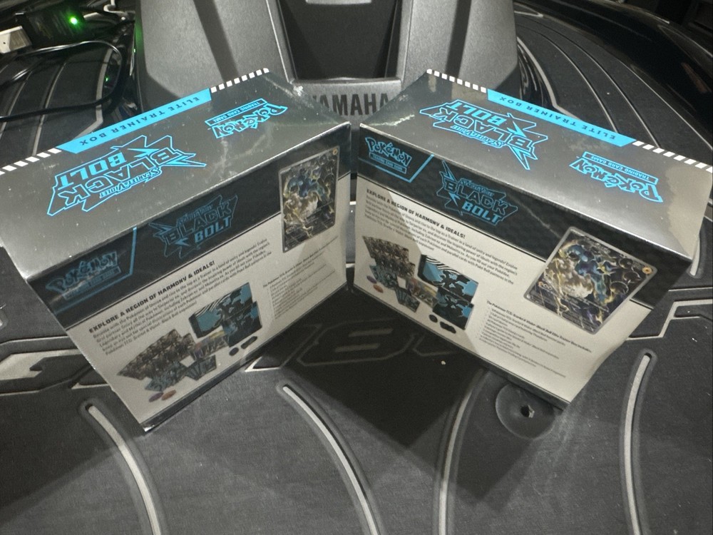 The product is a lot of two Pokemon TCG Black Bolt Elite Trainer Box (ETB) sets, featuring the character Reshiram as well as the exclusive Black Bolt. These factory sealed boxes contain standard-sized cards made of card stock, perfect for Pokémon League events. Manufactured by Nintendo in 2025, these boxes include promotional materials and booster packs for a thrilling gameplay experience suitable for ages 6 and up. With a focus on the Black Bolt set, these ETBs offer collectors and players alike a chance to enhance their decks with rare and powerful cards. Factory sealed unopened If you have any questions please contact me thank you!