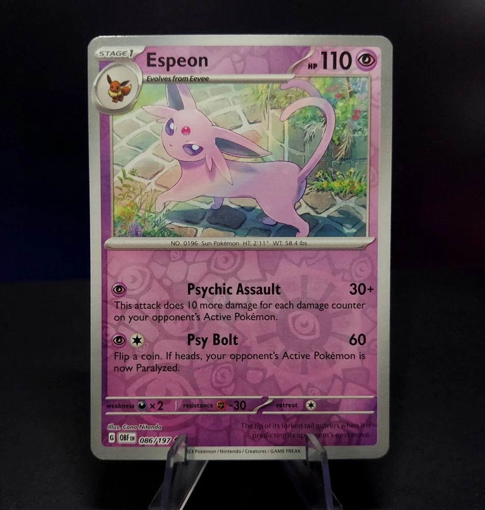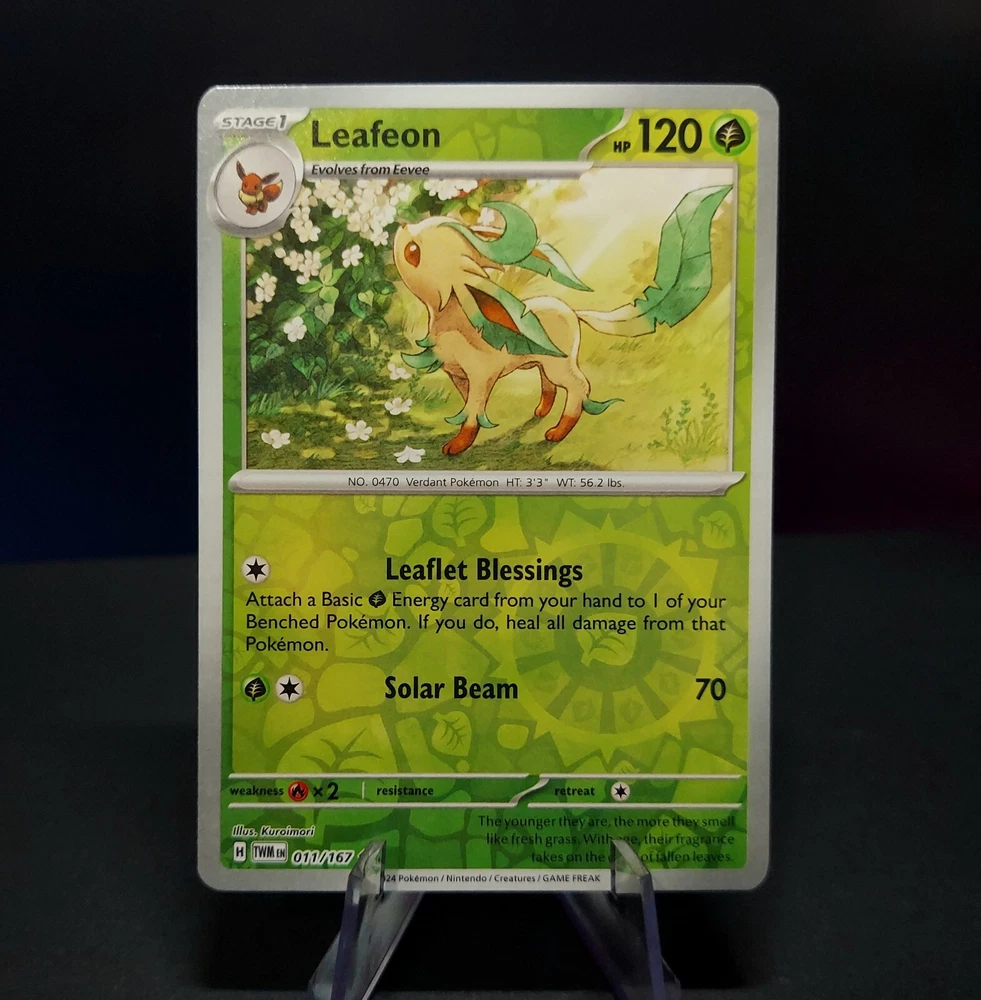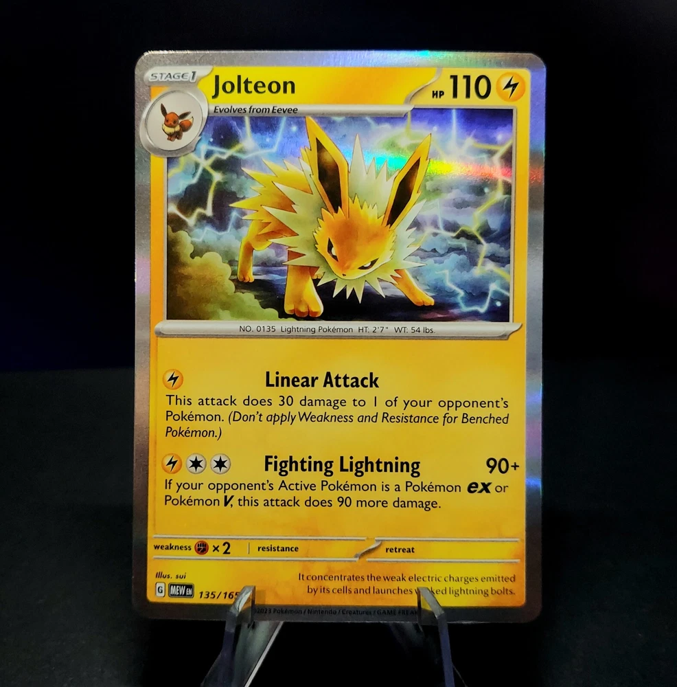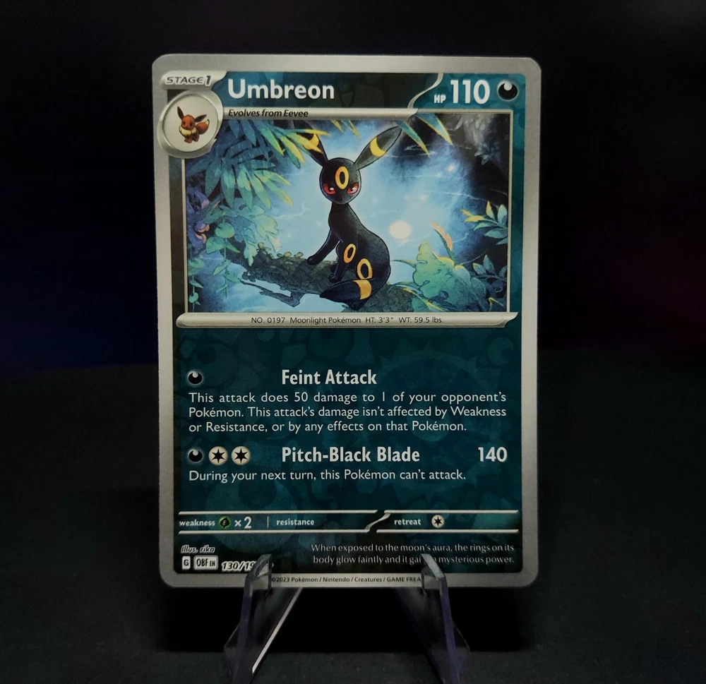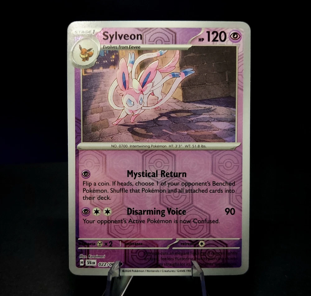 Popular among children and adults alike, this complete set features every evolution of the beloved Pokémon, Eevee! Eevee's cute charm and powerful forms make this set a great collectors item or gift for people of all ages! This set includes nine cards, all near mint or better condition, each with a holographic finish: Pokemon 151 Flareon, Vaporeon, Jolteon Holo Shrouded Fable Eevee 050/064 Reverse Holo Shrouded Fable Sylveon 022/064 Reverse Holo Obsidian Flame Umbreon 130/197 & Espeon 086/197 Reverse Holo Twilight Masquerade Leafeon 011/167 & Glaceon 054/167 Reverse Holo Thanks for considering my item! I am a collector myself and pack my cards exactly how I would want to receive them. Each card is shipped with ample padding and protection, no wiggle room allowed !