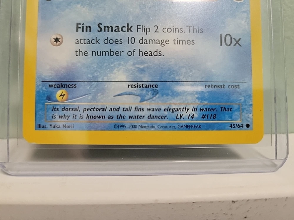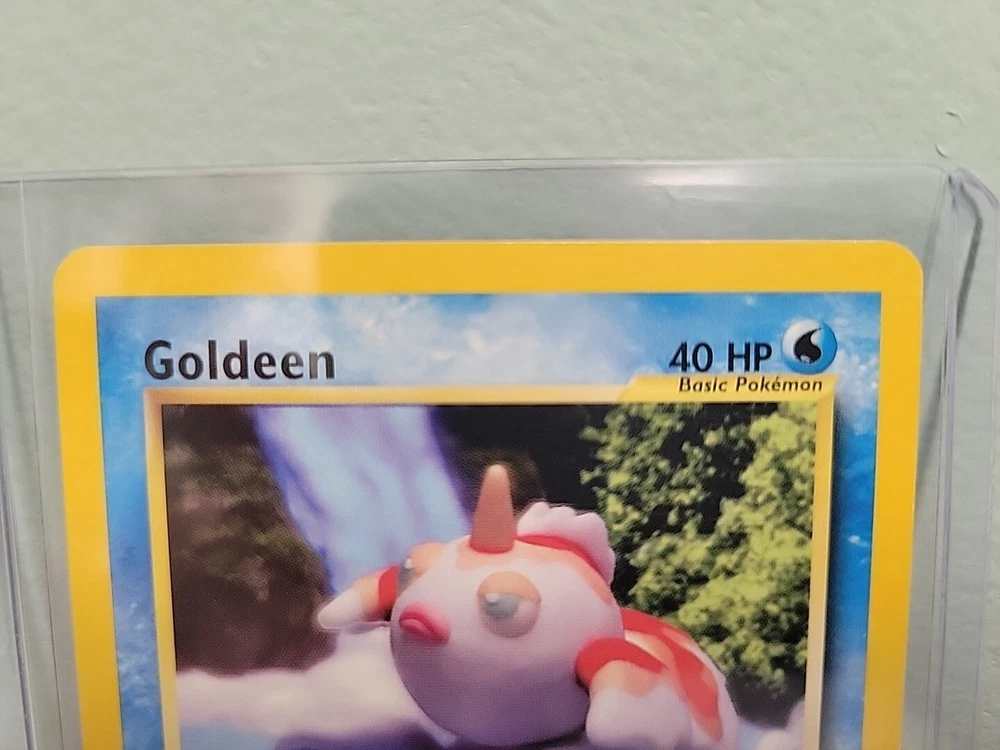 Attribute/MTG:Color: Water Graded: No Card Name: Goldeen Vintage: No Card Type: Pokémon Features: 1st Edition Character: Goldeen Autographed: No Material: Card Stock Year Manufactured: 2001 Game: Pokémon TCG Rarity: Common Illustrator: Yuka Morii Card Condition: Lightly Played (Excellent) Language: English HP: 40 Finish: Regular Card Size: Standard Set: Neo Revelation Card Number: 45/64 Stage: Basic Country/Region of Manufacture: United States Manufacturer: The Pokémon Company