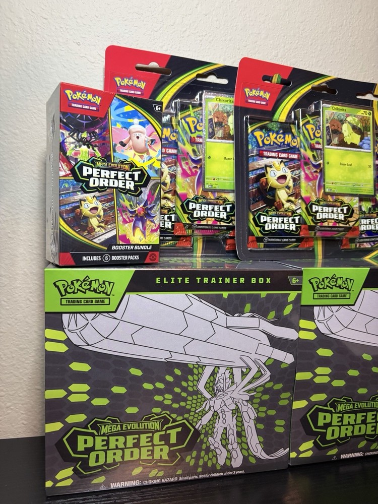 Brand new factory sealed! This lot includes: 2 Perfect Order Elite Trainer Boxes 2 Perfect Order Booster Bundles 2 Perfect Order 3-pack blisters All in hand ready to ship!