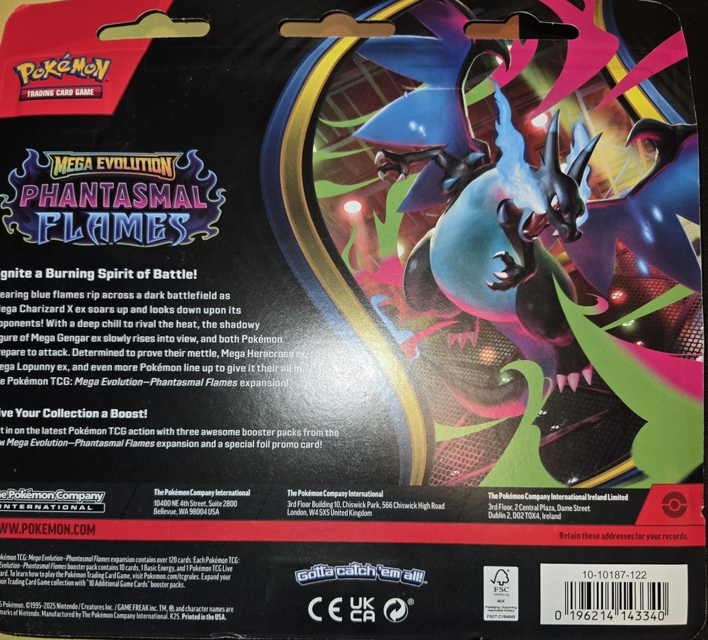 You are buying a Pokemon TCG Mega Evolution Phantasmal Flames 3-Pack Blister Weavile Promo by The Pokemon Company. This product is in NEAR-MINT condition, is BRAND NEW and SEALED . Please be advised of the following when buying: Product will be shipped in a padded envelope! Please ask about combined shipping if interested to buying more. Thank you!
