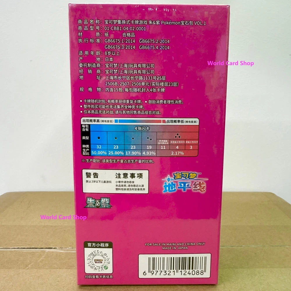 For bulk purchases or orders over USD$300, we will ship via DHL or FedEx. This product was released in Mainland China on January 17, 2025. • Each box contains 15 packs, 4 cards per pack. 20 boxes per case. • You will receive a brand-new, sealed box. The item you will receive is like the one shown in the picture. 100% genuine Nintendo Pokémon cards. Abo u t items: 1. If you have any questions, please contact us. We will provide excellent service and solve the problem. 2. All cards are 100% authorized product. 3. If you want to see the card picture, please contact us before shipping. 4. Cards do not guarantee PSA rating scores. Shipping policy: 8-12 working days (Standard shipping) Speed PAK Standard 4-7 working days(Expedited shipping) DHL or Fedex or UPS International Buyers, EU/UK buyers: Import duties, taxes, and charges are not included in the item price or shipping cost. These charges are the buyer's responsibility. Please check with your country's customs office to determine what these additional costs will be prior to bidding or buying. Return policy : Please contact us first when return, exchange and refund is required. Any direct return of purchased items will not be processed. Item must be returned in new condition, as received with all accompanied accessories and literature, including the factory carton. Shipping, handling is not refundable unless item is returned because of defect.