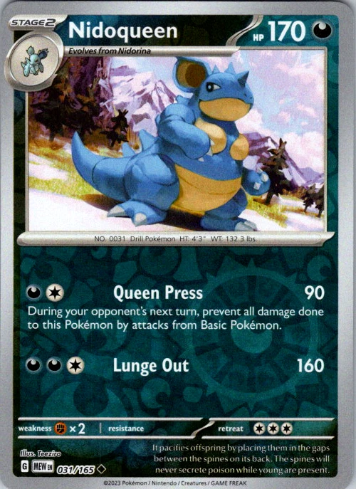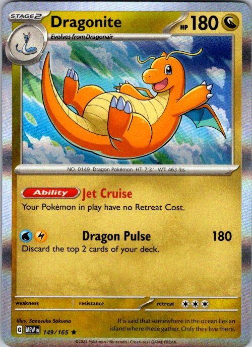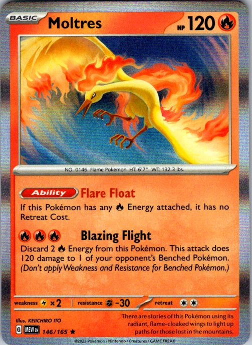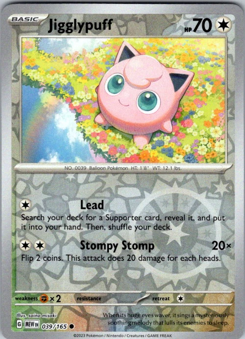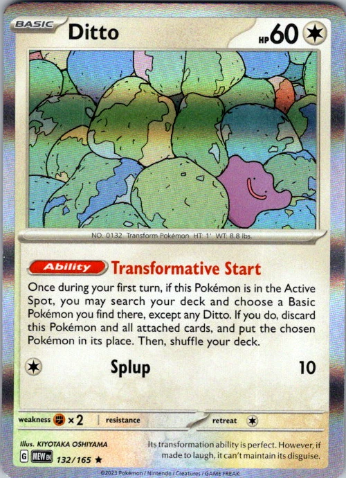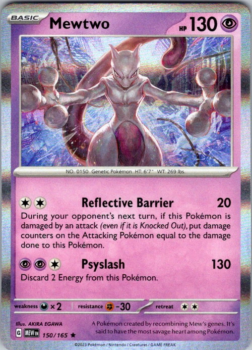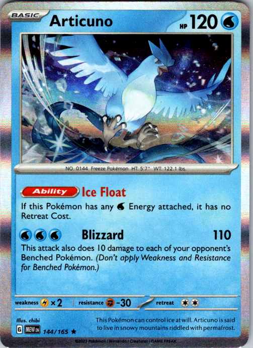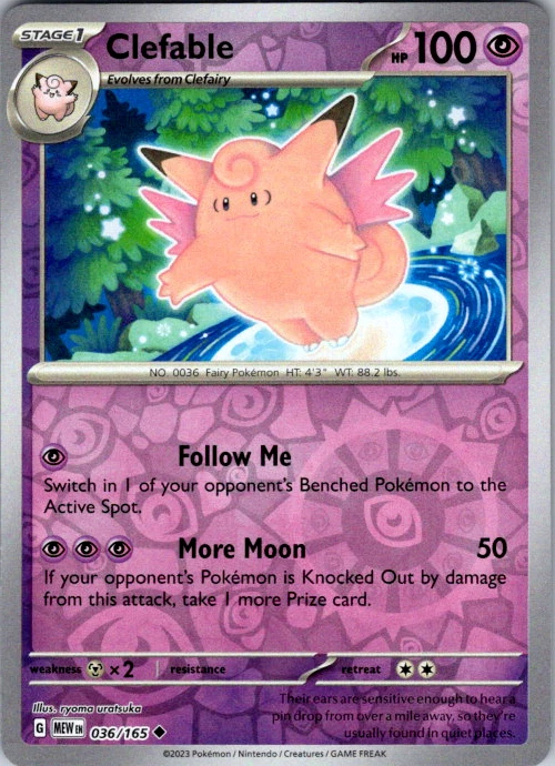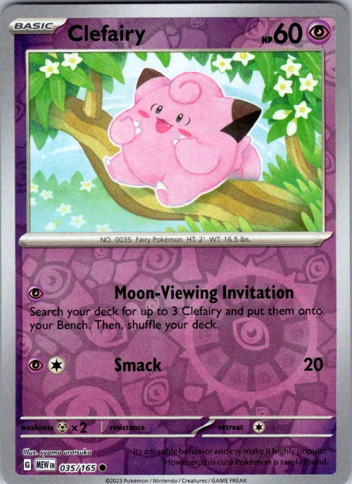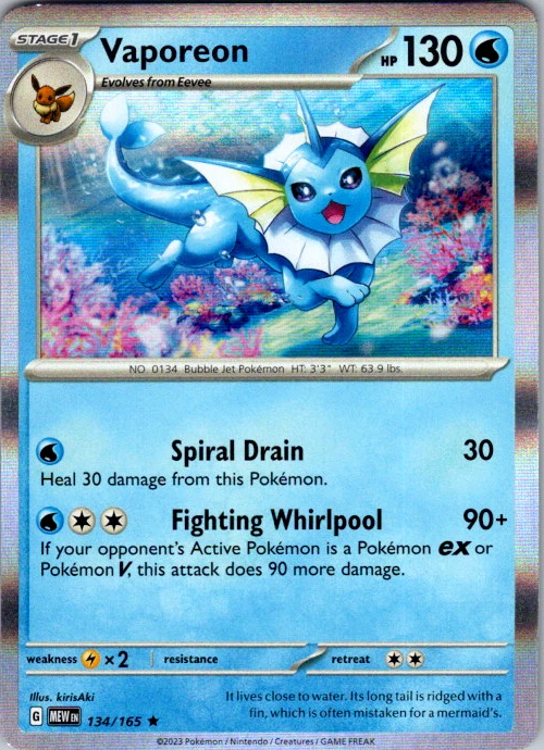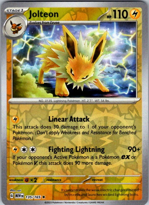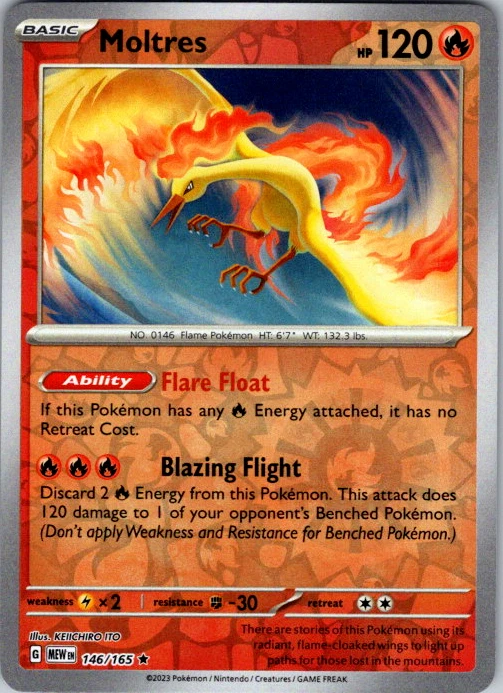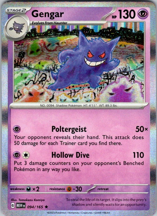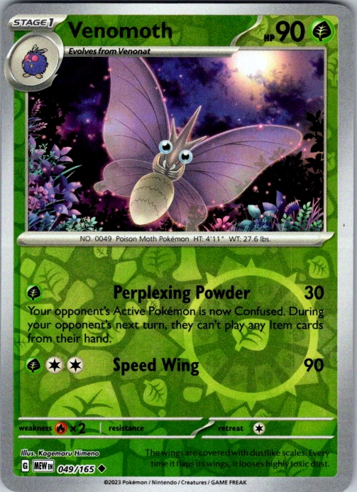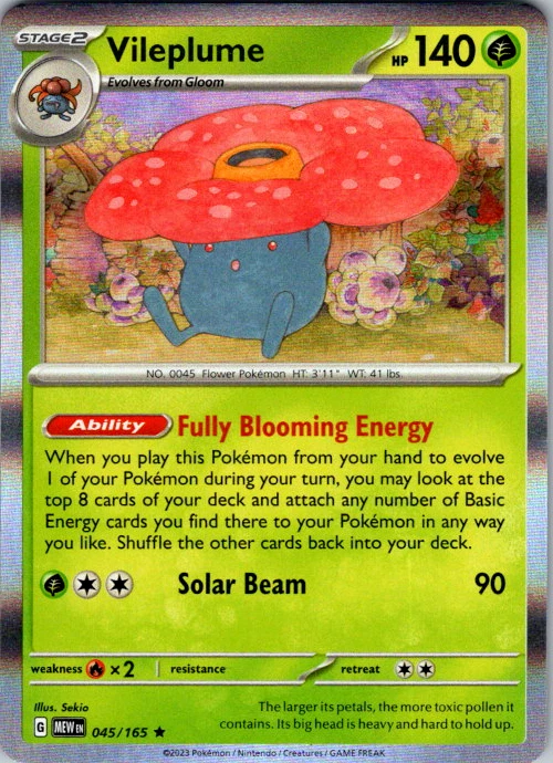Upgrade your deck or collection, with this assortment of rare and reverse holo cards from SV: Scarlet & Violet 151. All cards in this listing are near mint. Don't forget to leave positive feedback, and thanks for your purchase! ---Card Condition Guide--- Near Mint (NM): Cards in Near Mint condition show minimal wear from shuffling, play, or handling and can have a nearly unmarked surface, crisp corners, and unblemished edges outside of a few slight flaws. A Near Mint card may have slight edge wear or a couple minor scratches, but overall look nearly un-played with no major defects. The acceptable range of cards within the Near Mint condition includes both cards with no imperfections and cards with few, minimal imperfections. Lightly Played (LP): Cards in Lightly Played condition may have minor edge wear, scuffs, or scratches. There are no significant imperfections or issues with the structural integrity of the card. Noticeable imperfections are okay, but none should be too severe or at too high a volume. The acceptable range of cards within the Lightly Played condition includes both cards with few or a handful of minor imperfections. Moderately Played (MP): Cards in Moderately Played condition can have edge wear, surface wear, scratching or scuffing, bends with creases, or a combination of moderate examples of these imperfections. Some imperfections, such as bends, peels, or liquid exposure may be acceptable at Moderately Played as long as they do not impact the structural integrity of the card. Measurements provided with the standards will determine acceptability. Heavily Played (HP): Cards in Heavily Played (HP) condition show a major amount of wear. Cards can show a variety of moderate imperfections along with creasing, whitening and other faults. Heavily Played cards can also have defects or severe imperfections that do not impact the integrity of the card. While Heavily Played cards can have many imperfections, they must still be able to be authenticated and cannot be structurally damaged. Damaged: Damaged cards show wear or imperfections beyond the standards for other conditions. Cards in Damaged condition may have major border wear, scratching or scuffing, as well as bends, tears, splitting, foreign substances such as food or liquid, or other damage that impacts the integrity of the card. (VotS TCG will not sell damaged cards that contain foreign substances)