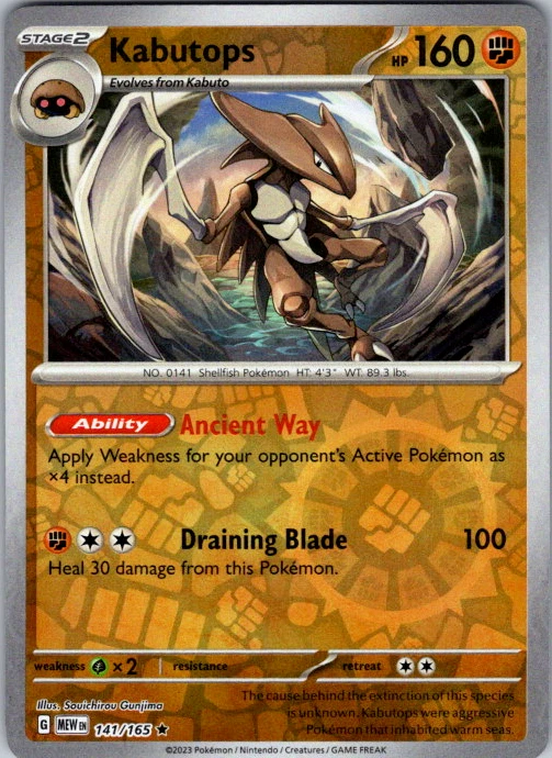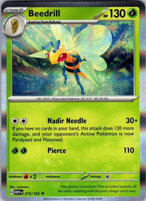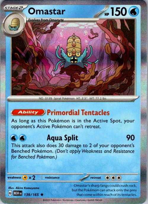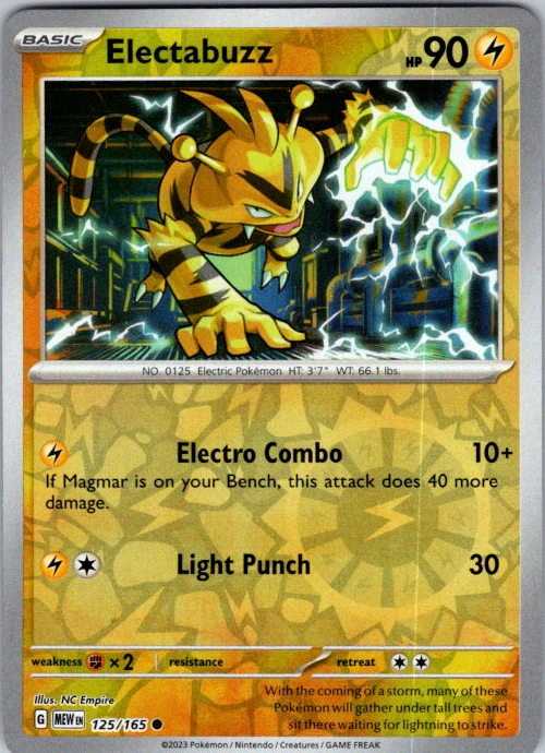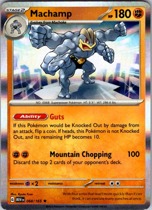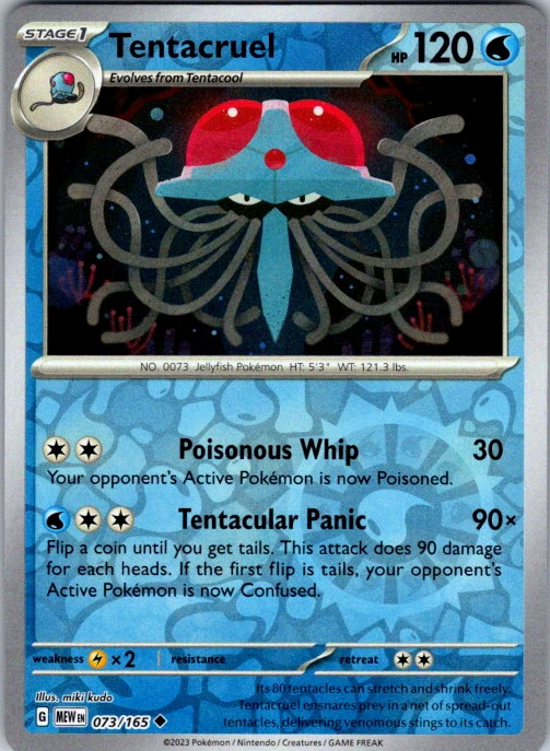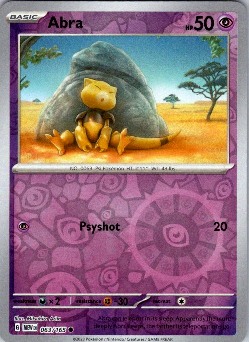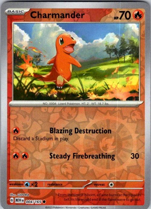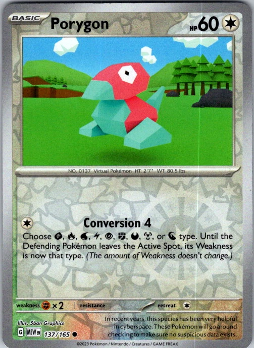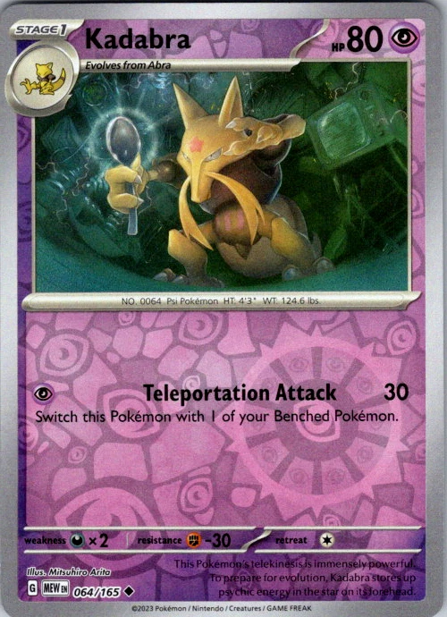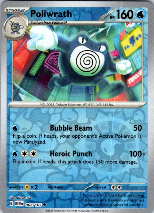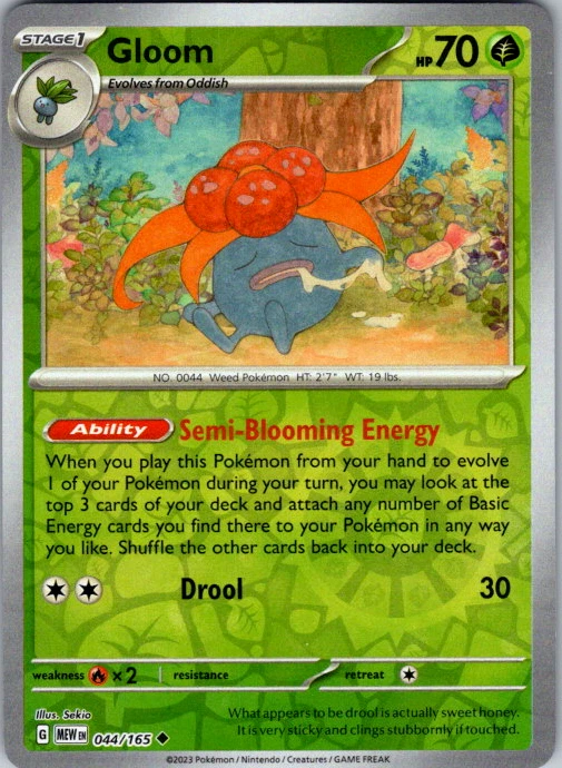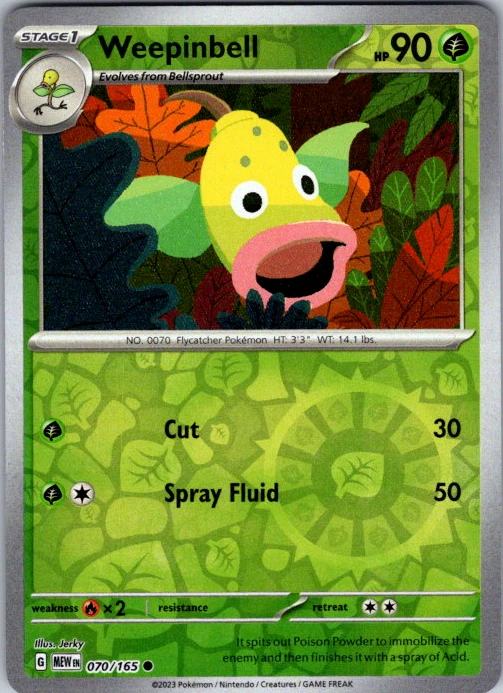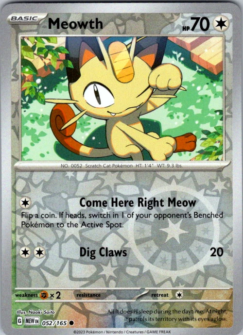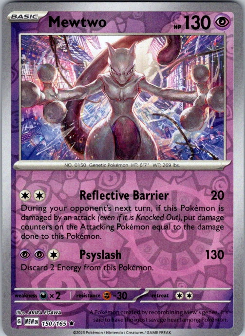 Upgrade your deck or collection, with this assortment of rare and reverse holo cards from SV: Scarlet & Violet 151. All cards in this listing are near mint. Don't forget to leave positive feedback, and thanks for your purchase! ---Card Condition Guide--- Near Mint (NM): Cards in Near Mint condition show minimal wear from shuffling, play, or handling and can have a nearly unmarked surface, crisp corners, and unblemished edges outside of a few slight flaws. A Near Mint card may have slight edge wear or a couple minor scratches, but overall look nearly un-played with no major defects. The acceptable range of cards within the Near Mint condition includes both cards with no imperfections and cards with few, minimal imperfections. Lightly Played (LP): Cards in Lightly Played condition may have minor edge wear, scuffs, or scratches. There are no significant imperfections or issues with the structural integrity of the card. Noticeable imperfections are okay, but none should be too severe or at too high a volume. The acceptable range of cards within the Lightly Played condition includes both cards with few or a handful of minor imperfections. Moderately Played (MP): Cards in Moderately Played condition can have edge wear, surface wear, scratching or scuffing, bends with creases, or a combination of moderate examples of these imperfections. Some imperfections, such as bends, peels, or liquid exposure may be acceptable at Moderately Played as long as they do not impact the structural integrity of the card. Measurements provided with the standards will determine acceptability. Heavily Played (HP): Cards in Heavily Played (HP) condition show a major amount of wear. Cards can show a variety of moderate imperfections along with creasing, whitening and other faults. Heavily Played cards can also have defects or severe imperfections that do not impact the integrity of the card. While Heavily Played cards can have many imperfections, they must still be able to be authenticated and cannot be structurally damaged. Damaged: Damaged cards show wear or imperfections beyond the standards for other conditions. Cards in Damaged condition may have major border wear, scratching or scuffing, as well as bends, tears, splitting, foreign substances such as food or liquid, or other damage that impacts the integrity of the card. (VotS TCG will not sell damaged cards that contain foreign substances)