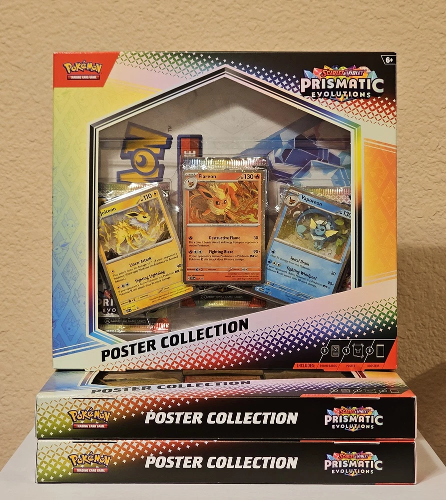 Pokemon TCG Scarlet & Violet Prismatic Evolutions Poster Collection (Lot Of 3). Condition is New/Factory Sealed. Shipped with USPS Ground Advantage.