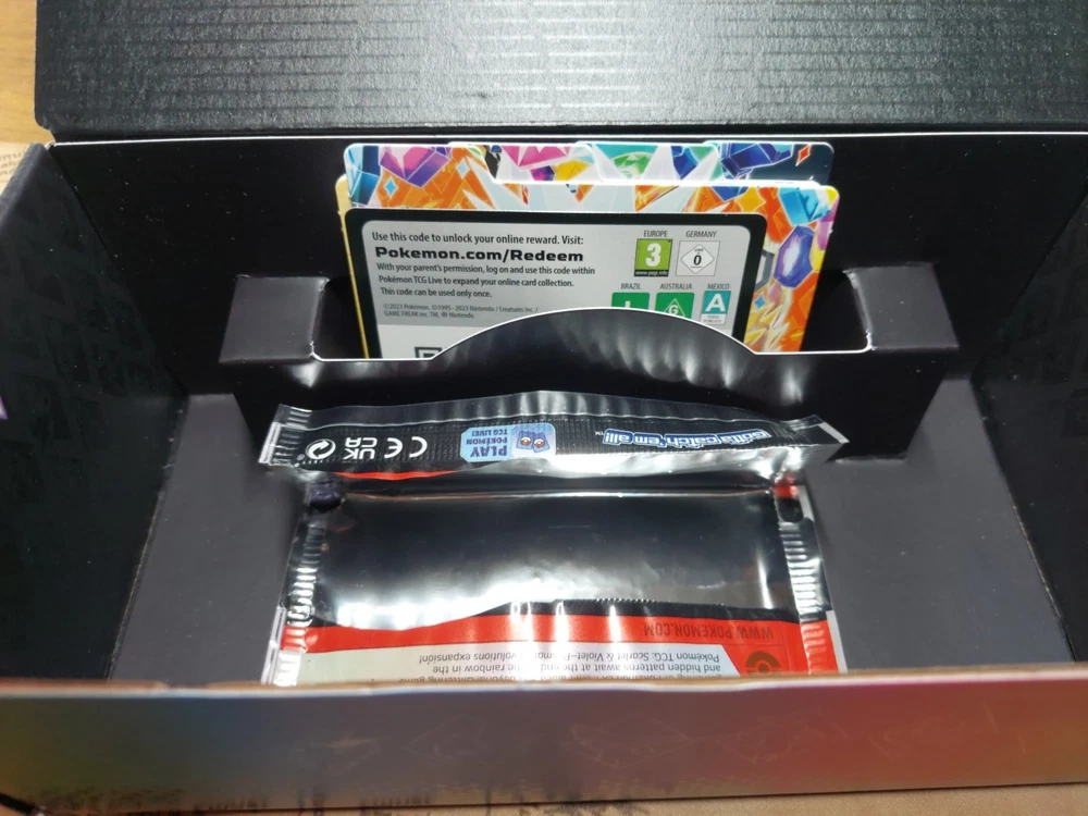 No packs Box sleeve, box, dividers, code card, empty pack.