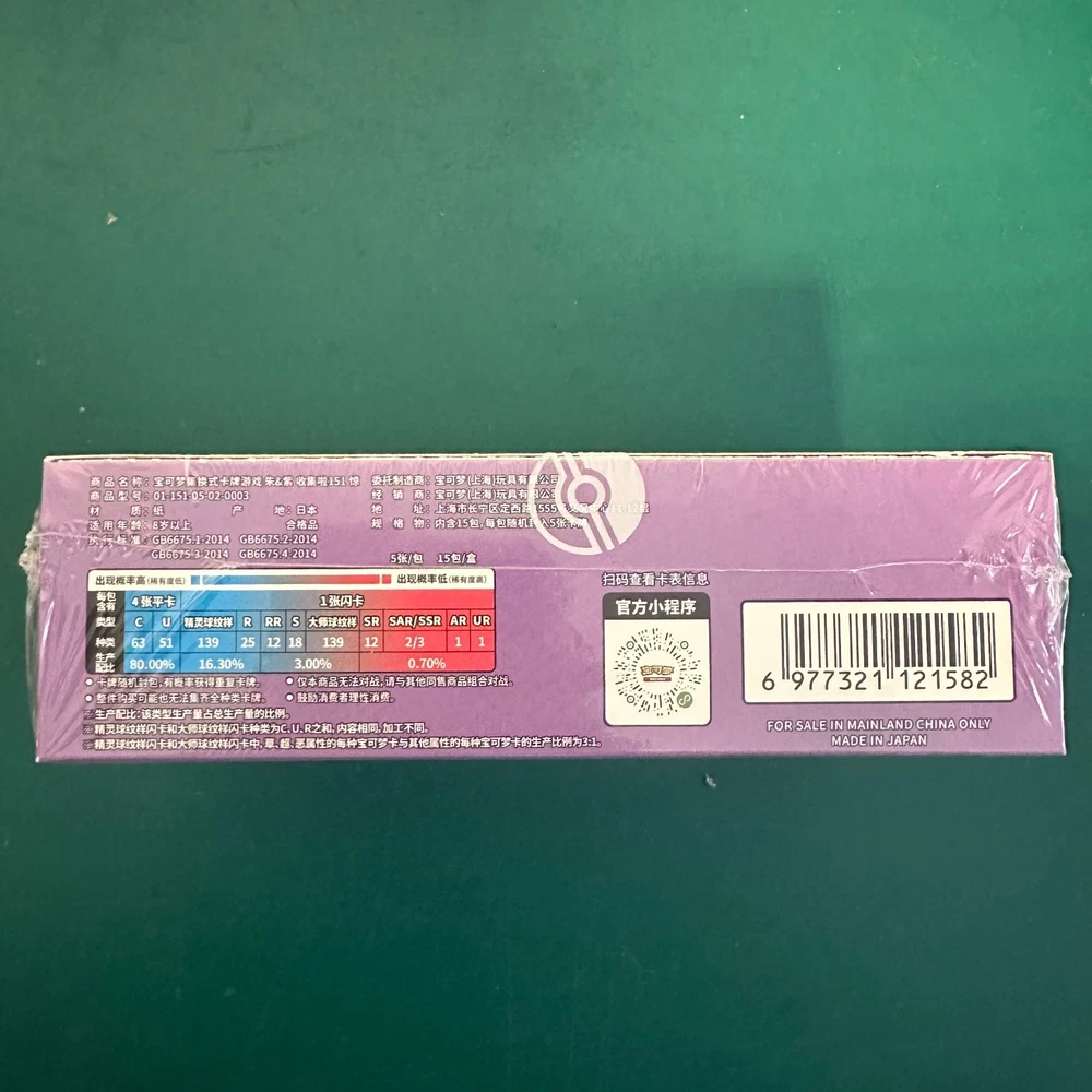 Pokemon TCG Simplified Chinese Collect 151C 3.0 Surprise Slim Booster Box Sealed Features: Product Name: Pokemon 151C Surprise Trading Cards Product Specifications: 5 cards/pack,15 packs/box Main Material: Paper Shipping: Orders will be processed and shipped within 1-4 business days after payment is confirmed. International shipping times vary by destination, typically ranging from 7 to 20 business days. You can track the logistics online using the provided tracking number Returns: If a return or exchange is requested due to buyer's preference for unopened items, the buyer is responsible for all shipping costs involved. Once the original factory seal or sealed box is opened, the item is considered non-returnable unless there is a major printing or manufacturing defect. Returns due to quality issues will only be accepted after we receive the returned item and verify the defect
