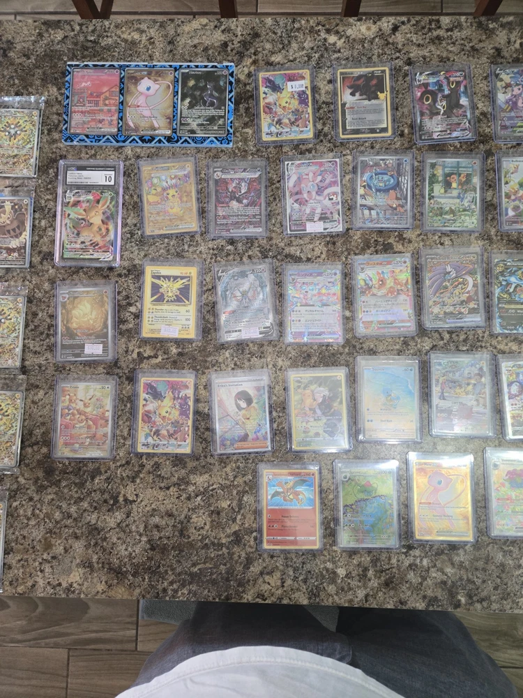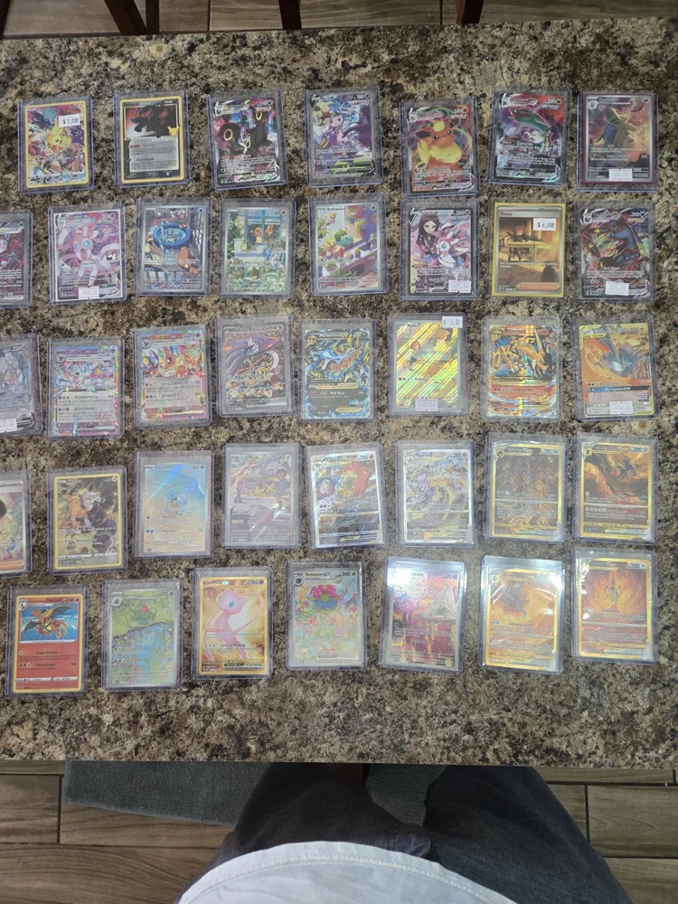 Pokemon collection TCG vaules are from just pokemon there also lorcana and one piece mixed in. singles and binder I can show more photos if need just message me photos shown are all that would fit on ebay post 465 pokemon cards totaling $6,949 according to TCG