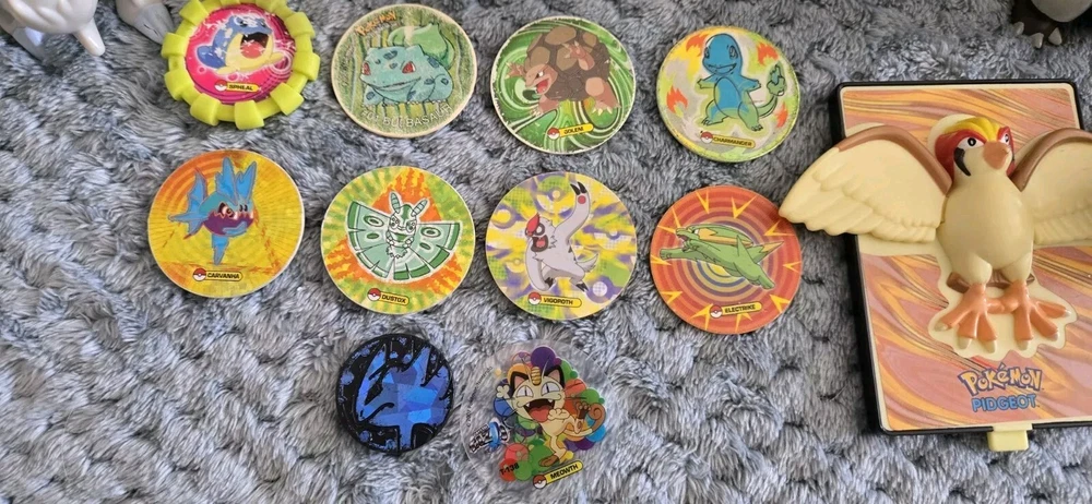 This is a lot of 6 Pokemon figurine toys from various brands including JAKKS Pacific, McDonald's, and Burger King. These action figures may also include Pogs related to the Pokemon franchise. The lot offers a variety of collectible Pokemon toys for fans of the franchise.