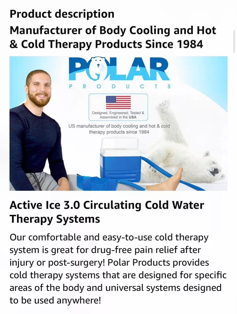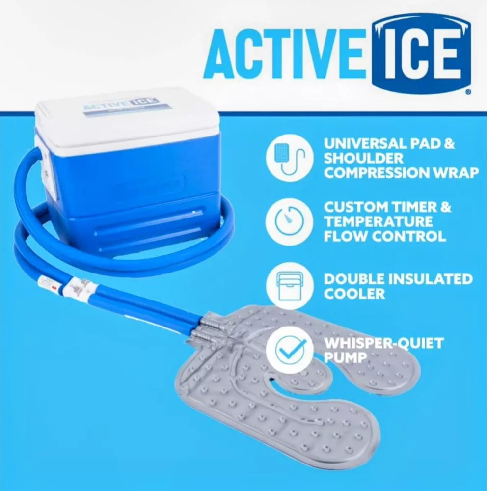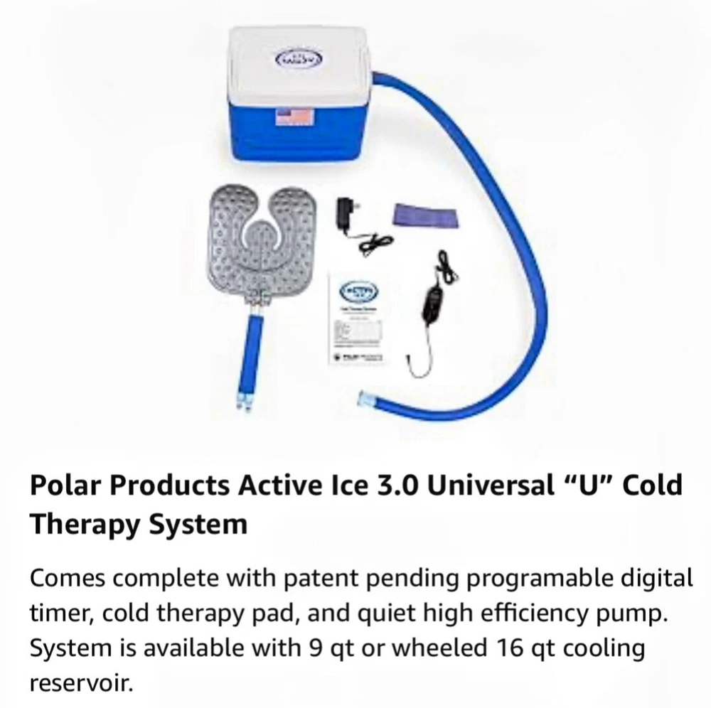 Polar Active Ice 3.0 Cold Therapy Ice Machine System With Programmable Digital Timer, Shoulder And Joint Compression Pad, Lightweight, 9 Quart Cooler, Quiet Pump, Strong Cryotherapy Pain Relief Treatment. Our Timer Allows You To Customize A Personalized Cooling On And Off Cycle, This Ensures A Safe, Convenient, And Effective Cold Therapy Treatment Perfect For Post-Surgery Pain Management And Relief Day Or Night. Our Double Insulated 9 Quart Cooling Reservoir Is Large Enough To Provide Continuous Cold Therapy For Many Hours But Lightweight Enough To Carry. One Load Of Ice And Water Will Last Much Longer Than Other Cryotherapy Machines. The Polar Active Ice Machine Provides Cooling That Will Last Through The Night. Includes Ergonimically Designed Shoulder And Joint Pad, Can Be Used For Knee, Shoulder, Back, Ankle, Cervical, Leg, And Hip. And Dual Therapy Pad Connector With Attached Elastic And Velcro Belts. Often Recommended By Doctors For Pain Management And To Promote Healing After Surgery. Excellent Fit And Comfort. This Product Is Highly Recommended And Has High Positive Star Ratings From Customers Worldwide. Retail Price Is $335 My Special Price Offer Is $199.99 with Free Shipping. This Is Brand New Unopened Factory Sealed Box (Blue)