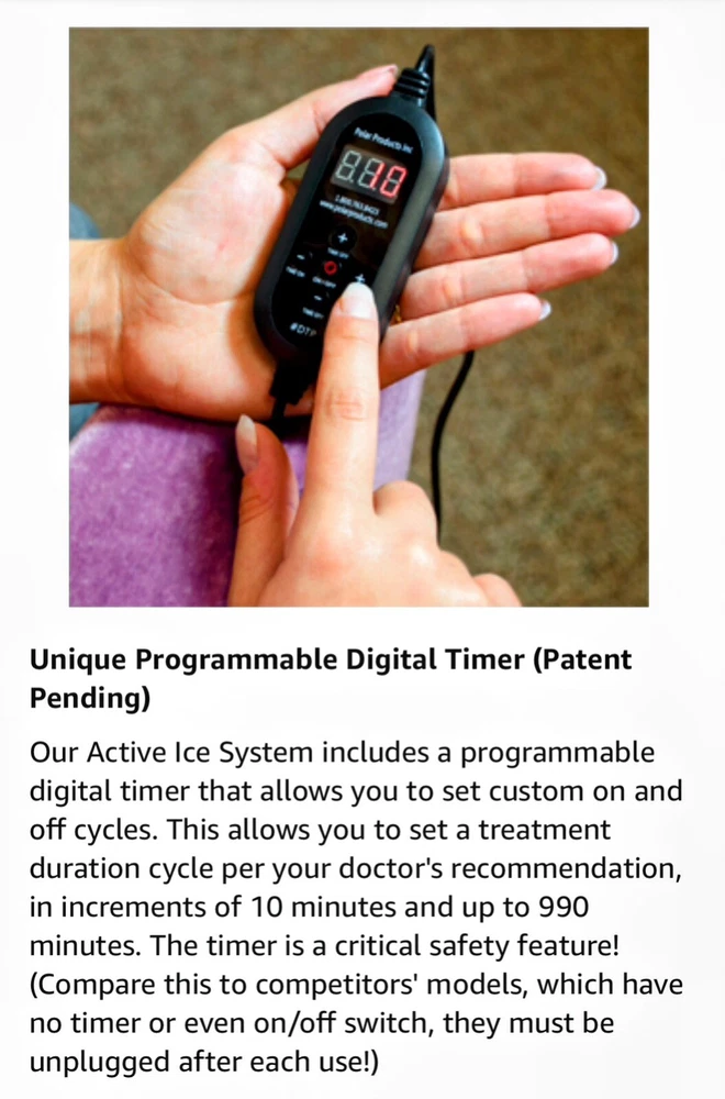 Item Length: 16 in Item Width: 10.5 in Main Purpose: Arthritis, Increase Blood Flow, Minimize Swelling, Pain Relief Labels & Certifications: ADA Compliant Material: ABS, Neoprene, Nylon, Plastic, Rubber MPN: AIS3-9-D-KB Size: 5 Piece Set Features: Reusable, Programmable Digital Timer, Lightweight, Portable, Quick Connect/Disconnect Couplings, Easy & Convenient To Use, Cold Therapy All Night Long, Dual Therapy Pad Connecter, Excellent Fit And Comfort, Double Insulated 9 Quart Cooling Reservoir, Post-Surgery Pain Management & Relief, Ergonomically Designed Shoulder Pad, Flexible Model: Polar Products Active Ice 3.0 Country/Region of Manufacture: United States UPC: 052062003659 Type: Cold Therapy System Maximum Temperature: 999*F Color: Blue Shape: Rectangle gtin13: 052062003659 Brand: Polar Products Item Height: 12 in