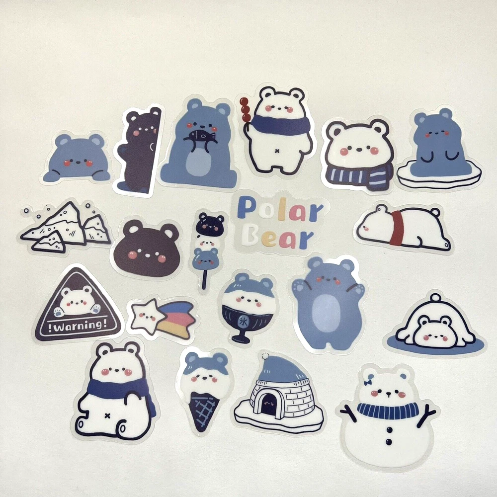 Adorable polar bear stickers. PVC plastic flake stickers. The one in the last photo measures approx. 2 inches tall. 40 pieces. 20 designs x 2. I have more stickers, washi tape and paper for sale. If I do combine shipping. Please put all the items you want to purchase in ONE cart and then pay. I will refund you the difference in shipping after shipping label is printed. Let me know if you have any questions through eBay messaging. Thank you for stopping by!
