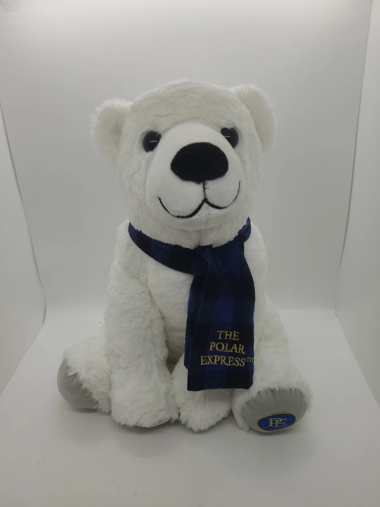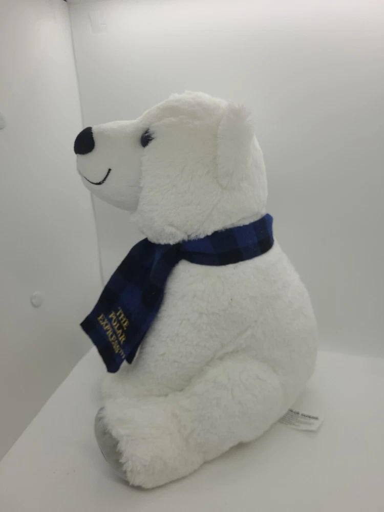 Embark on a magical journey with the beloved Polar Express White Bear, a cuddly companion perfect for Christmas celebrations or year-round companionship. This 13-inch plush teddy, dressed in a charming blue plaid scarf, is a delightful addition to any collection, big or small. Crafted with care and detailed attention, this small-sized polar bear captures the spirit of the iconic character from The Polar Express. A retired treasure, it hails directly from China, making it a unique find for fans and collectors of the cherished character family. Add a touch of arctic warmth to your home with this endearing plush bear.