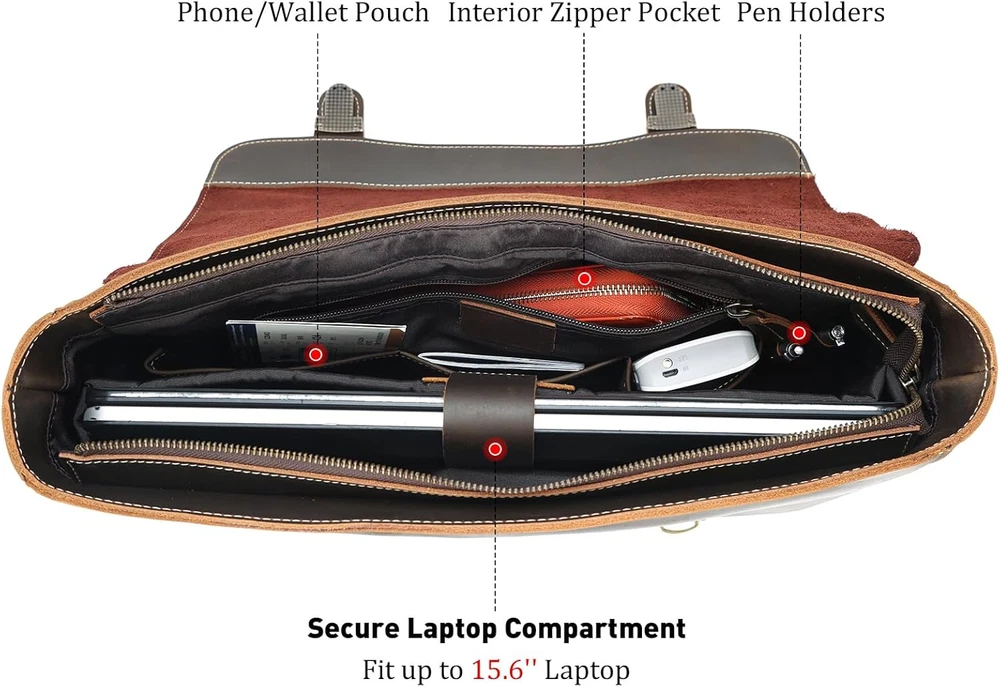Store New Arrivals Add to Favorite View Feedback Contact Polare Vintage Full Grain Leather Tote Briefcase Professional 16'' Laptop Shoulder Messenger Bag with YKK Metal Zippers(Dark Brown) Description Item model number 6792978 Item Dimensions LxWxH 16.1 x 3.9 x 12.2 inches Color Dark Brown(updated Version) Color Dark Brown(updated Version) Country of Origin USA Item Weight 3 pounds Department mens Standing screen display size 15.6 Inches Is Discontinued By Manufacturer No Product Dimensions 16.1 x 3.9 x 12.2 inches In the Updated Version: We have improved the following three details based on the feedback of our customers. 1.The lining:while the old lining was made of polyester fiber, the upgraded lining is made of soft cotton cloth. 2.The zipper: We now use only YKK zippers to ensure quality and reliability. 3.The elastic band used to fasten the computer: The new elastic band is high density with excellent elasticity and thickness. High Quality Material: Made of natural full grain leather for a professional and trendy appearance. Inside of Bag Has Laptop Padding. The Laptop Padding fits 15.6 inch Laptop. The main compartment fit 16'' Laptop. Great Size for Casual and Work: Length 16.1"x Width 3.9" x Height 12.2" - Handle approx. 2 inches. Item weight: 3.5lb/1.6kg. Handcrafted: Strong stitching, handcrafted by professional artisans for long lasting durability that looks better with age. The side part leather stitching with D-ring are double stiched. Don’t Settle for Less: Comes with a one year Warranty and customer service Product Description Color: Dark Brown Polare Full Grain Leather Tote Briefcase 16'' Laptop Shoulder Messenger Bag ✔ HIGH QUALITY MATERIAL. Made of natural full grain leather. Inside of bag has laptop padding. The Laptop Padding fits 15.6" Laptop. The main compartment fit 16'' Laptop. ✔ DIMENSIONS. Length 16.1"x Width 3.9" x Height 12.2" - Handle approx. 2 inches. Item weight: 3.5lb/1.6kg. ✔ HANDCRAFTED. Strong stitching, handcrafted by professional artisans for long lasting durability that looks better with age. The side part leather stitching with D-ring are double stiched. Luxury Gift Package Perfect Gift For Him Luxury pack with a thick cotton dust bag to protect your bag in perfect condition. It is one of the most amazing gift choices for your family, friends and yourself, the meaning will last a . Details Sturdy Handle Premium Thick Hook Customized Hardware Soft Shoulder Strap Pad ABOUT US We offer the best prices around on high quality products. Our E-store includes media such as books, movies, music and games while offering electronics, toys, sporting apparel, clothing, tools, general home, garden items and more. SHIPPING We are always working hard to ensure your package arrives as soon as possible. Please understand that some factors like weather, high postal traffic, and the performance of shipping companies are outside of our control. We offer free shipping to the lower 48 states and ship within 2 business days of payment, usually sooner. We do not accept P.O. Boxes. Please provide a physical address. For shipping outside of the continental USA, we only use eBay's Global Shipping Program.The item is shipped to KY and then sent to the rest of the world. International customers are responsible for all duties and taxes. Continue to check out in order to calculate costs for shipping the item to your country. Messages regarding eBay's Global Shipping Program MUST be directed at eBay EXCLUSIVELY. RETURNS We offer a 30-Day Return Policy on items which you are not completely satisfied with. You have the option for a full-refund or an exchange of the item. No returns are available on items shipped outside of the USA. PAYMENT We accept PayPal. CONTACT US This page content is yet to come Please ad us to your favorite seller and visit again later Thank You CUSTOMER SATISFACTION We try our very best to make sure every customer is completely satisfied. If there's a problem, message us! We're happy to help. WE ACCEPT Copyright © 2021 AutoDS. | All Rights Reserved