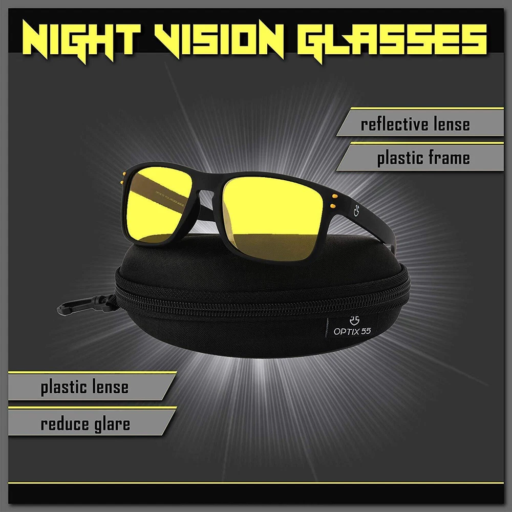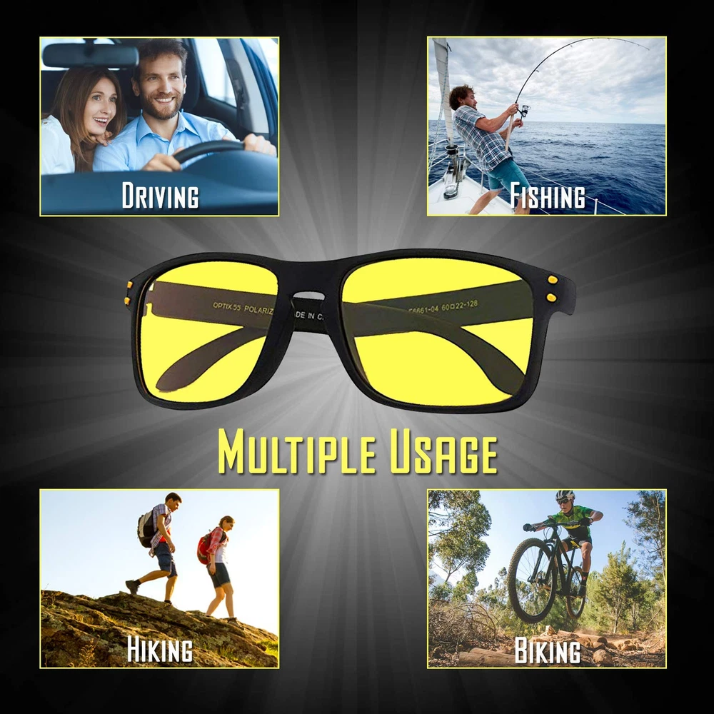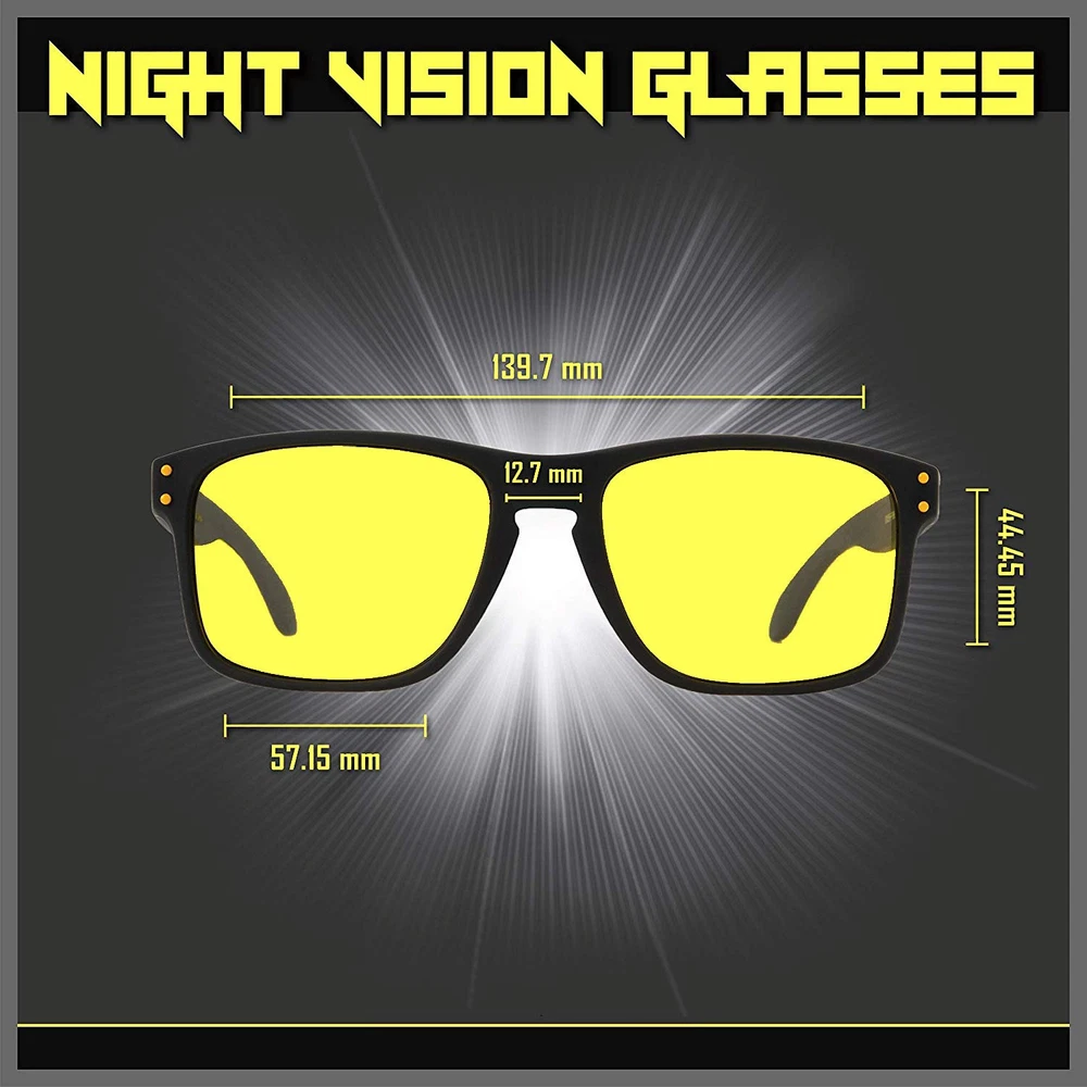 THE BEST SOLUTION FOR NIGHTTIME DRIVING - these night vision glasses feature an advanced HD technology that allows you to see clearly without straining your eyes for a safe ride. The PC frame with rubber finish ensures great fit, so you can comfortably wear your driving glasses even for long routes. GLARE REDUCTION FOR SAFE DRIVING - Oncoming headlights and bright road lights are not only uncomfortable to see, but they can also be extremely distracting and dangerous. Thanks to their yellow tinted lenses, these glasses act as night vision goggles to reduce glare, reflection and their negative effects while improving and brightening up the visual area. EXCELLENT QUALITY POLARIZED LENSES - The +0.74mm Polarized lenses with Revo coating eliminate intense reflected light, reducing glare and distracting reflections. As these polarized glasses work great against blinding sun, they double as day and night glasses too, for improved clarity 24/7 DURABLE DESIGN & BONUS EVA CASE - The high quality PC black frame and temple features a rubber finish and non-slip effect to keep your anti-glare glasses in place. Plus, the night driving glasses for women & men, come with a nice black case to keep them protected from scratches & damage ORDER THE BEST NIGHT GLASSES WITH CONFIDENCE - Join the community of people that have trusted night view glasses to improve their eyesight and enjoy a comfortable and above all safe night driving experience! Backed up by a cast-iron 30-Day Money Back Satisfaction , you have nothing to worry about. Your safety comes first - Order Yours Today!