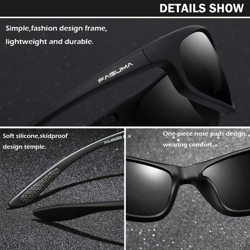 HD POLARIZED LENS:Offering UV400 Protection,eliminate reflected light and scattered light,cut glare and protect eyes perfectly. ULTRALIGHT,STYLISH,DURABLE:Lightweight design is ideal for usage by motorcycle and cycling,driving,running,fishing,climbing,trekking or other outdoor activities enthusiasts.stylish design,with rich color combinations of frames and lens.Polycarbonate lens and frames are impact,scratch resistant,durable and unbreakable. Best Customer Service:Any questions about our products,please contact us.We will provide the best service until our customers are satisfied.